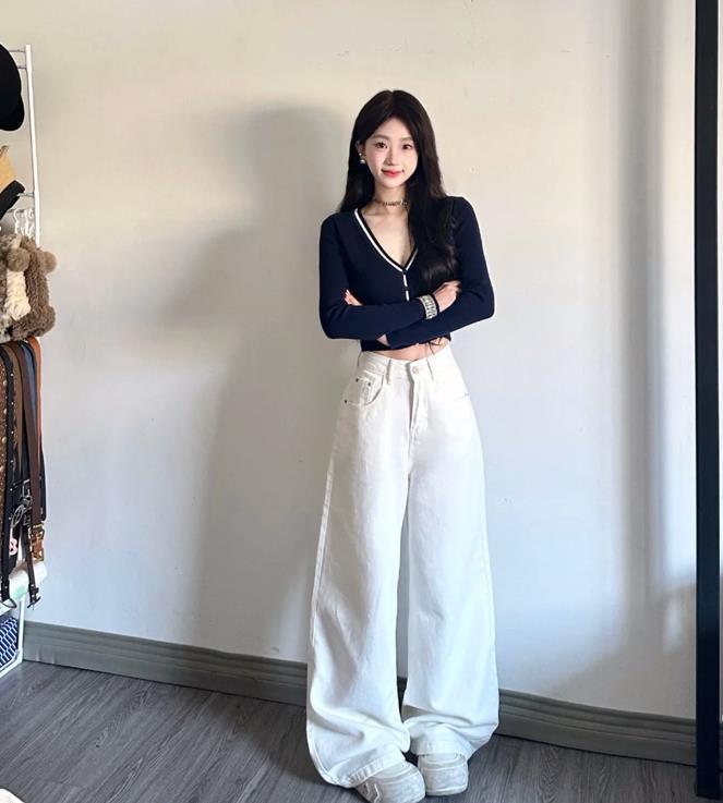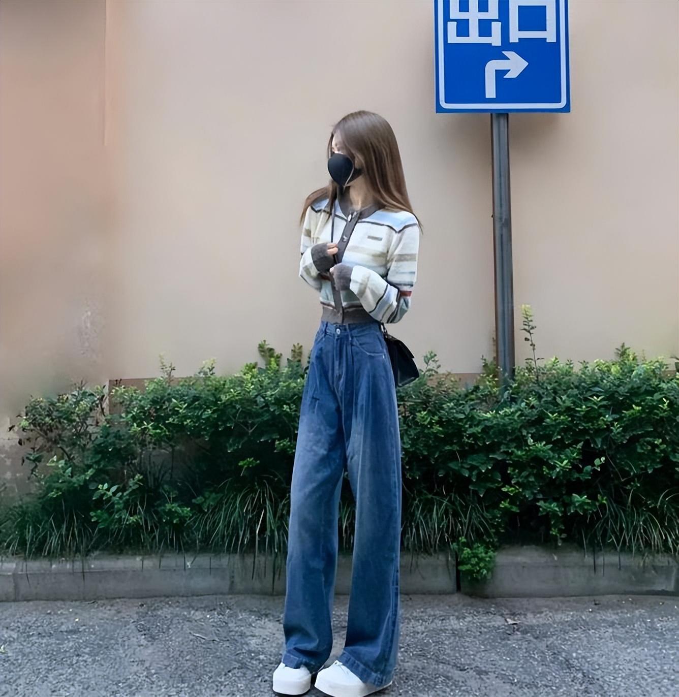 小個子女生一定要試試這一套穿搭,上短下長的搭配,輕鬆就優化身材比例,讓你在視覺上呈現出高挑感。針織小衫+牛仔闊腿長褲,搭配上小白鞋,韓系風格就營造了。