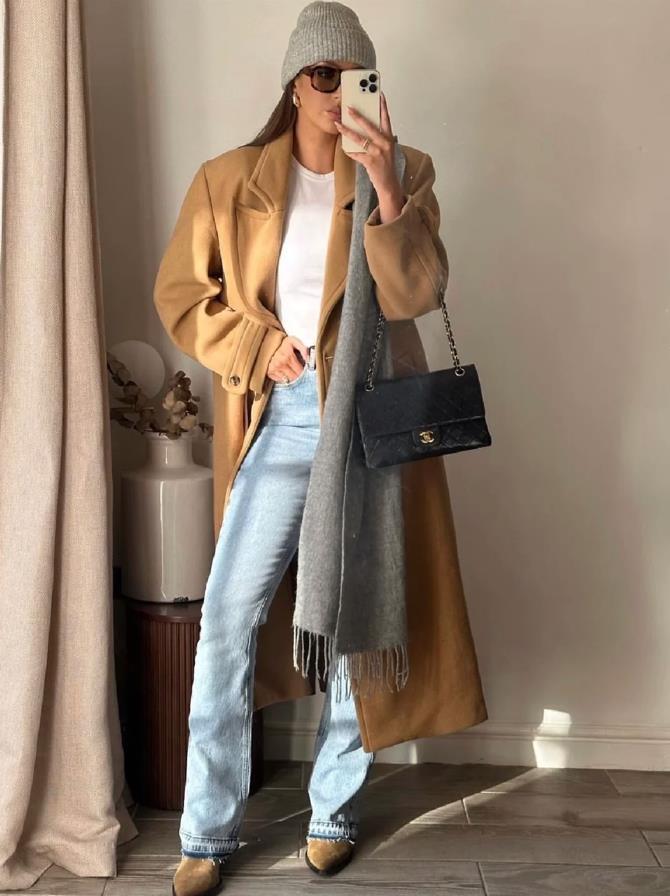 白t、牛仔褲和大衣,這些都是很基礎的單品,組合在一起後就輕鬆打造出高級感了。卡其色的長大衣,這個顏色是非常經典耐看的,也很顯氣質。