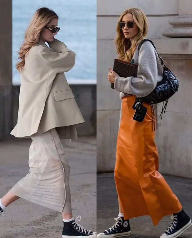 當然了,“大+小”的穿法也分很多種,有外大內小的組合,也又上小下大的結合,但不管是哪一種,它們帶來的效果都是顯瘦和顯高挑。