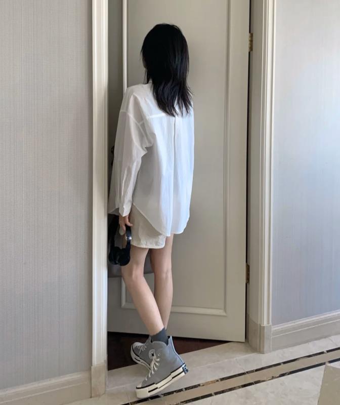 上大下小的穿搭,對於小個女生來說,可是非常友好的,顯瘦顯腿長的效果也是超讚的。當然,下身比例好的身材,就可以大方這麼穿,特別是夏天,露出雙腿肌膚來,既清爽又拉長腿部線條。