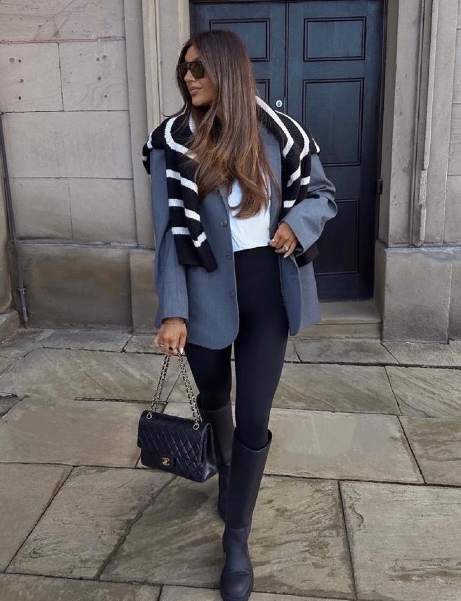 今年很流行的“大+小”穿搭你又怎能不試試?羊羔毛外套+鯊魚褲讓你一秒就變紙片人,實在是太顯瘦了。上松下緊是真的很絕,不會顯臃腫,反而很保暖顯瘦。下身比例好的身材,就可以大方這麼穿。