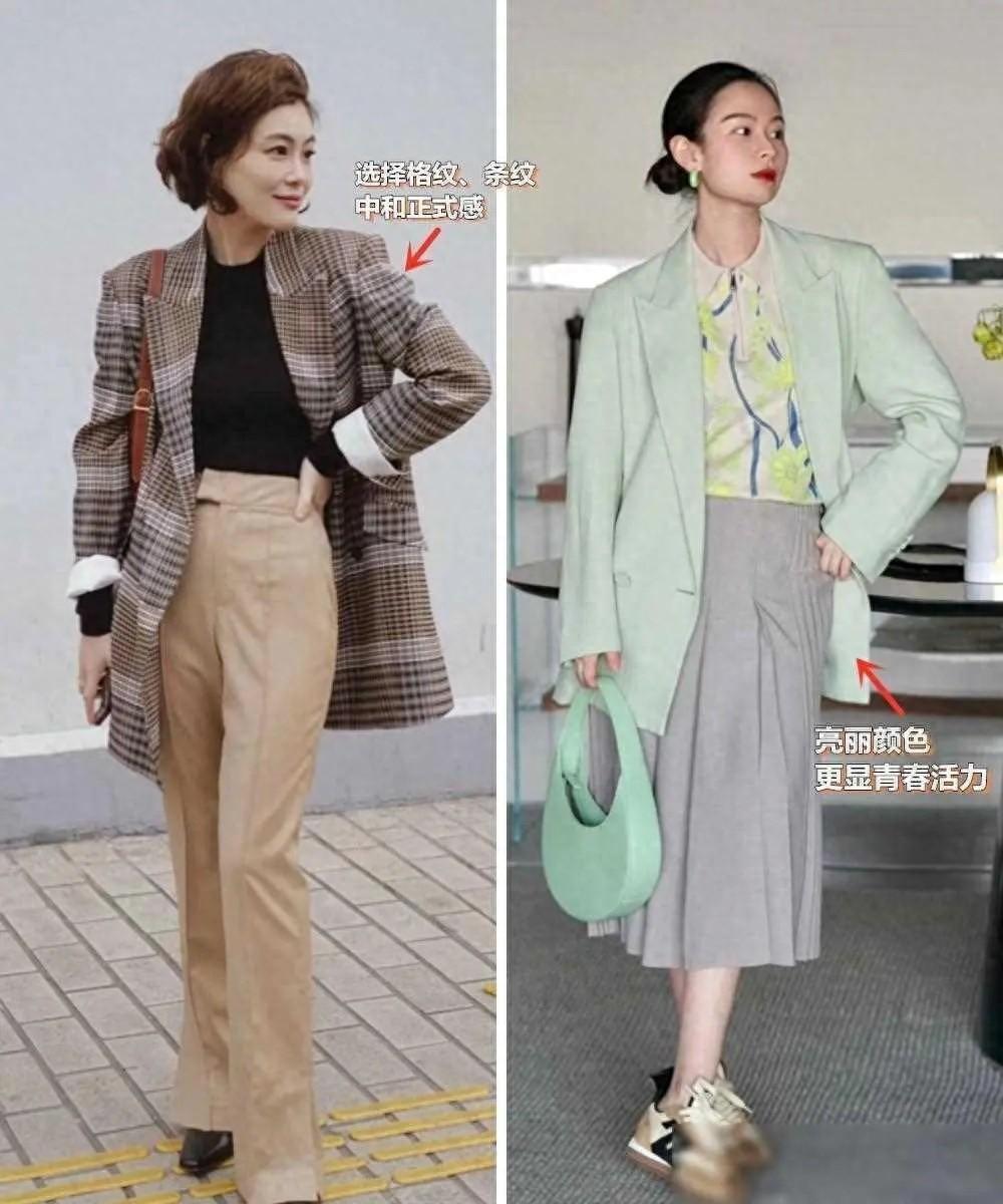 比如淺綠色、淺黃色、淺藍色、米白色、淺粉色,都是比較溫柔且自帶減齡效果的原色。淺色系的西裝外套,穿起來俏皮又減齡,在一定程度上還可以顯得膚色白皙。