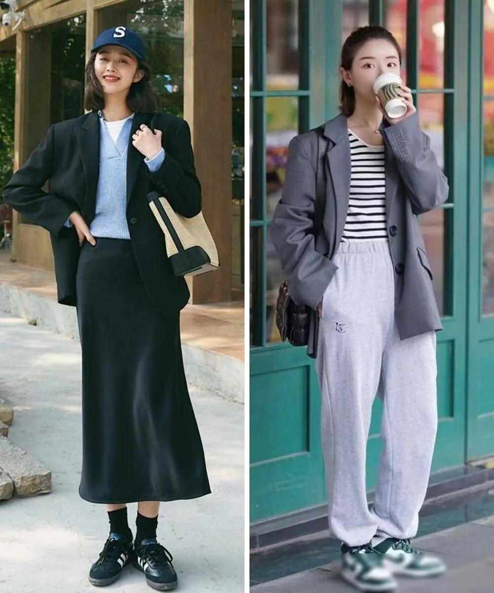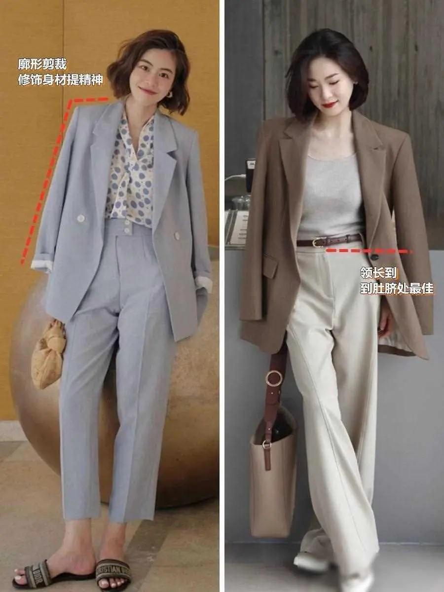 西服外套可以選擇比較寬鬆的版型,對於身體的包容性也會更強。我們用寬鬆西服外套,搭配休閒運動褲、或者魚尾半身裙,都擁有更時尚的風采。