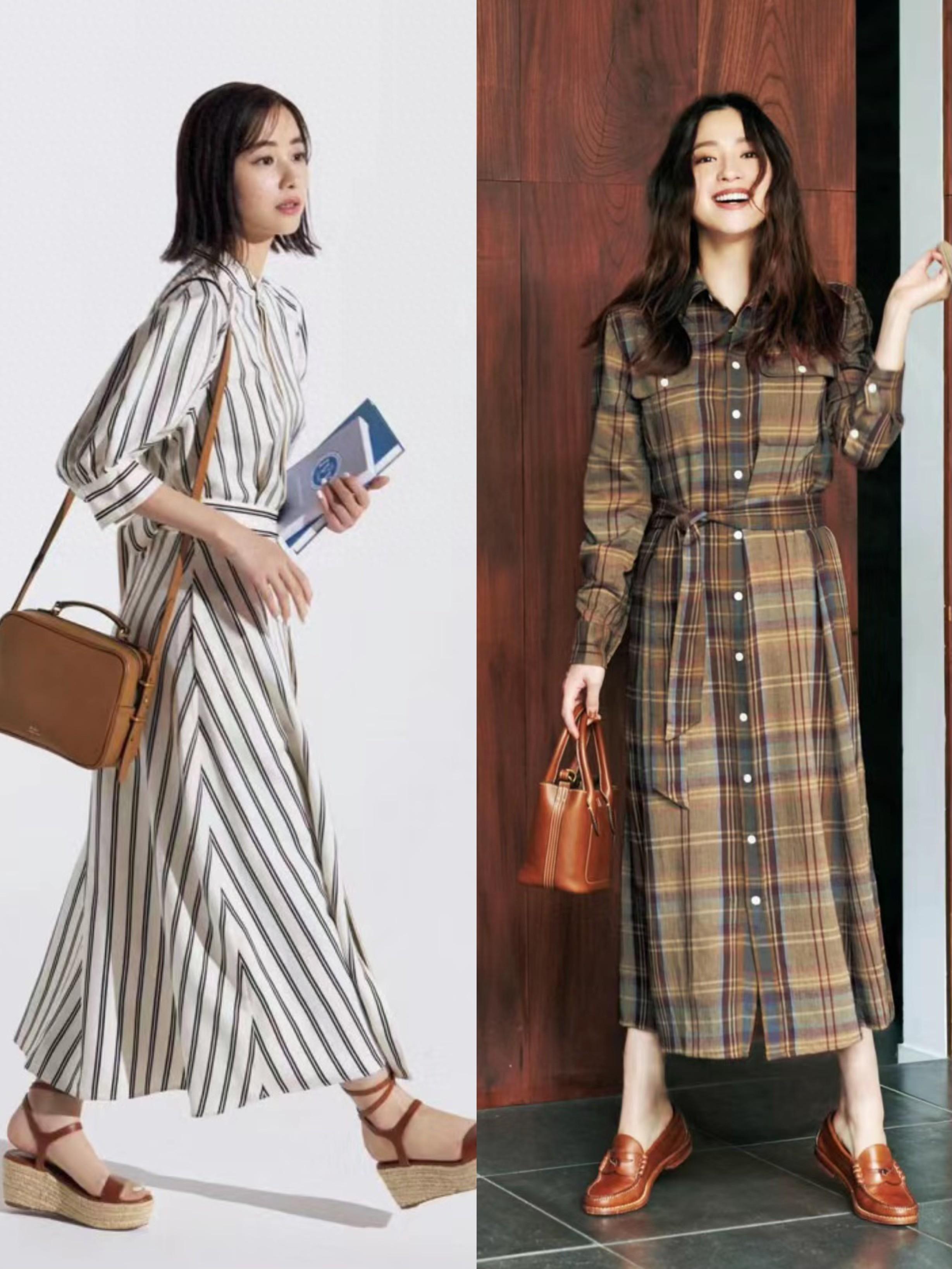 我們可以嘗試搭配文藝風的連衣裙,稍微寬鬆度條紋襯衫裙、或者棕色系的格紋復古襯衫裙,都帶有自己的腔調感。讓我們的穿搭,擁有了不一樣的氣質咩。