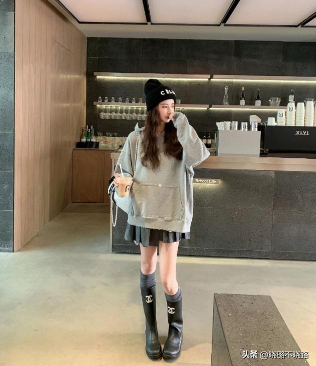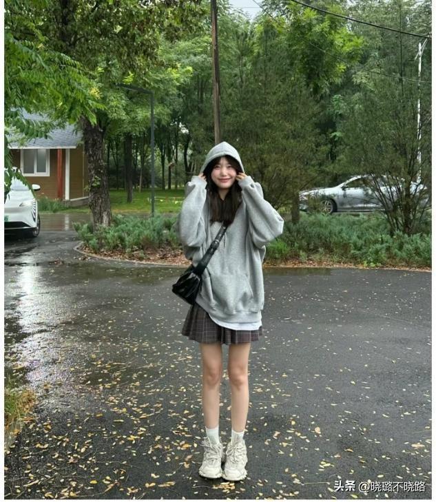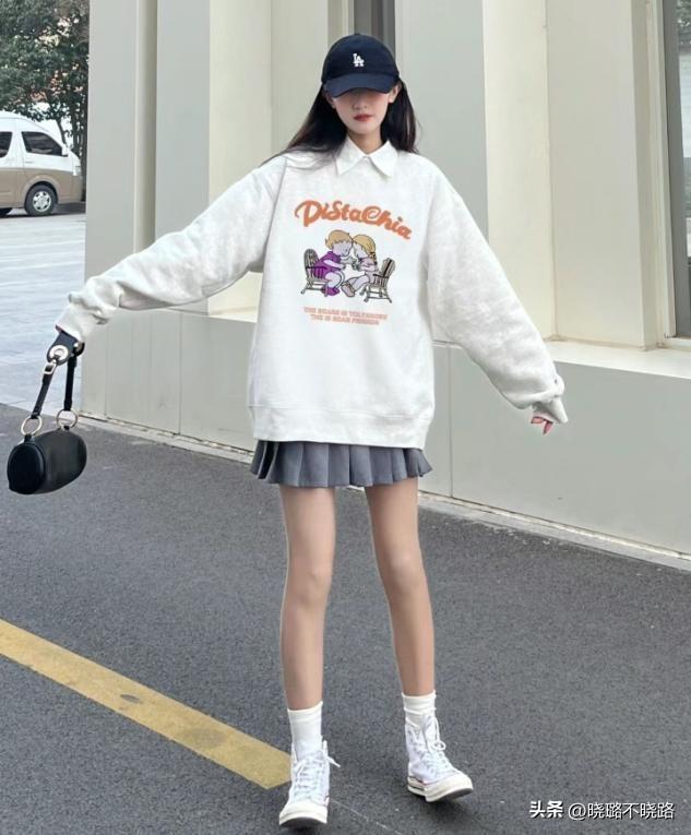 廓形款式的衛衣上衣,無論是連帽還是圓領的款式,真的很適合早春去設計時尚感,而且這種廓形的上衣着裝特別遮肉,用來組合百褶裙纔是大勢所趨。