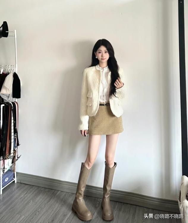 短款設計的小香風上衣用來組合短裙的話,身材的精緻線條比例感就非常的明顯,而且短裙的穿搭,可以大幅度的去增加露腿的面積。小個子女生就可以更好的顯高顯瘦。