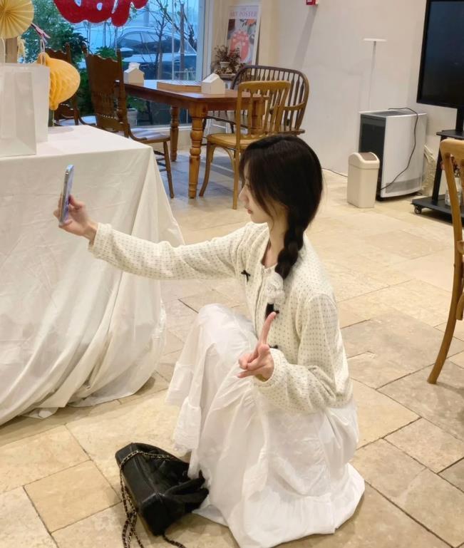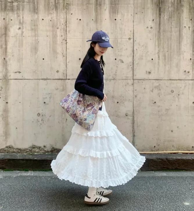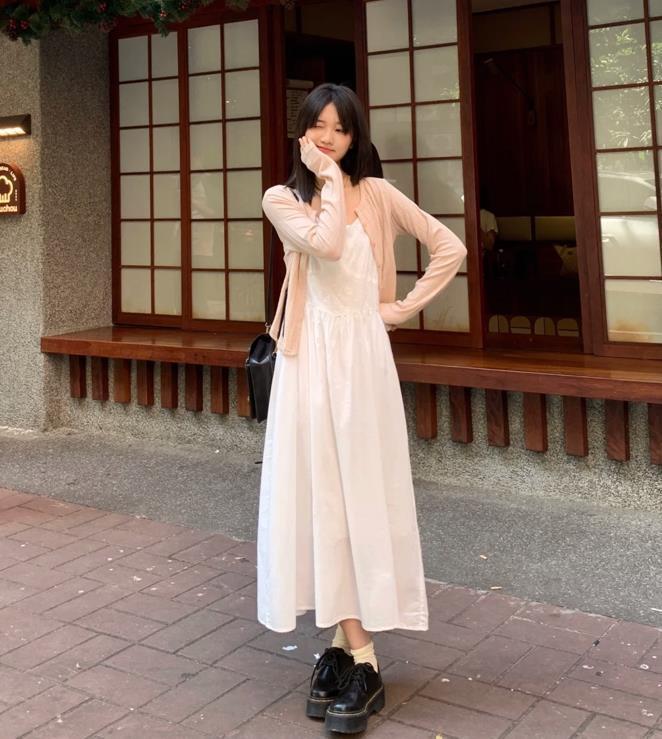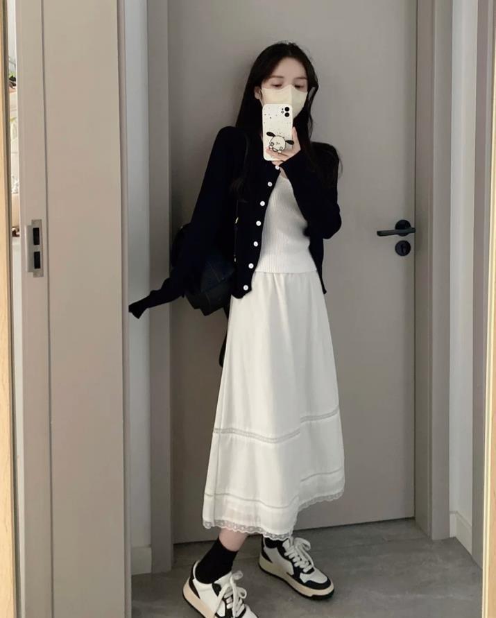 春日的穿搭,又怎能不溫柔一些呢?這套少女感十足的裝扮,相信很多女性們都會喜歡的,藏藍色開衫+小白裙,很出片的造型。