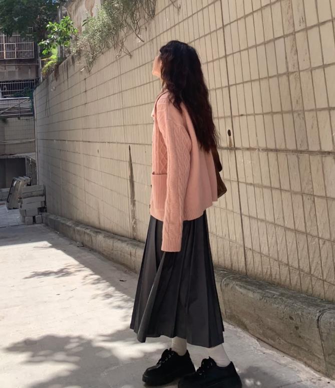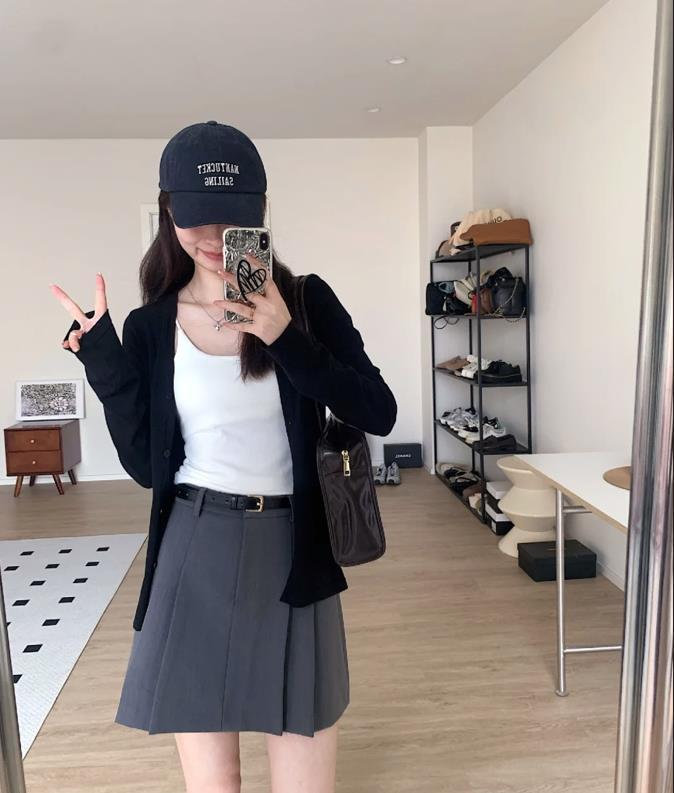 一定要試試黑色開衫,真的是非常百搭和耐看,這個色系可以說是最不挑人的了,與韓系百褶短裙相配,哪怕是單獨拎出來一件都很抗打。