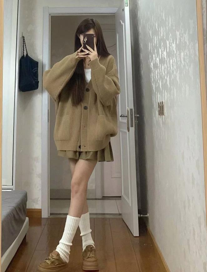開衫裏面搭配小吊帶背心,再搭配一雙運動鞋,就是韓國歐尼的感覺。