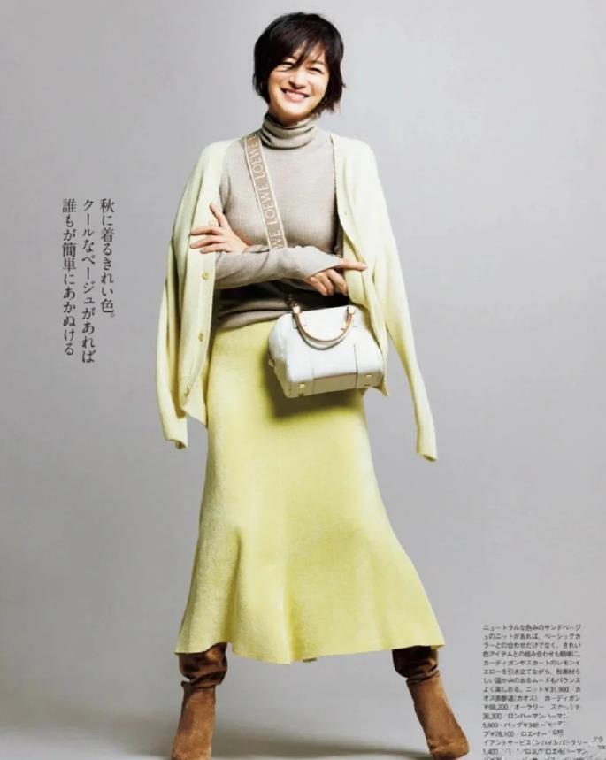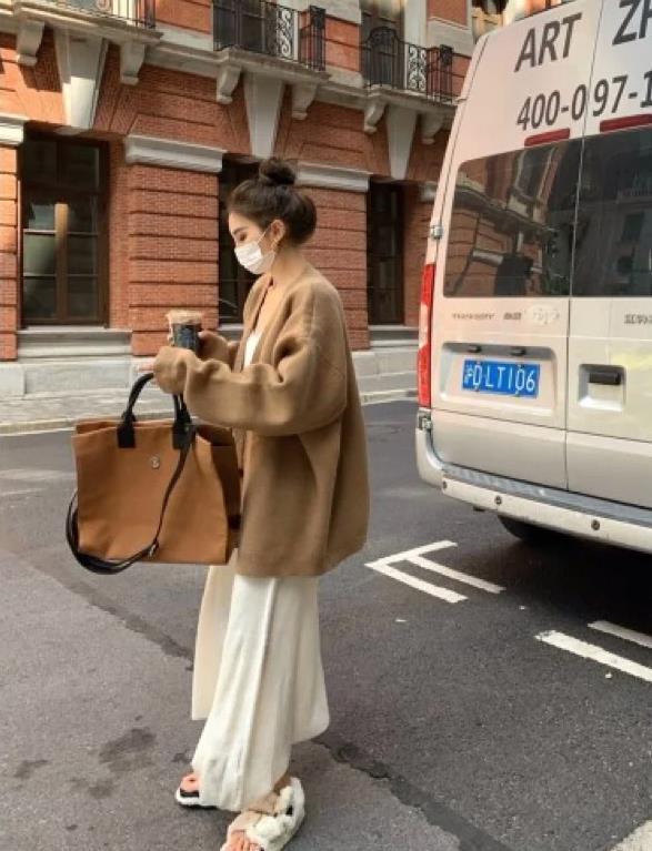 淺咖色系的開衫,能夠很好營造出成熟、優雅的風格,也適合各種膚色,因爲低飽和度的色系,對膚色是沒有任何影響的。