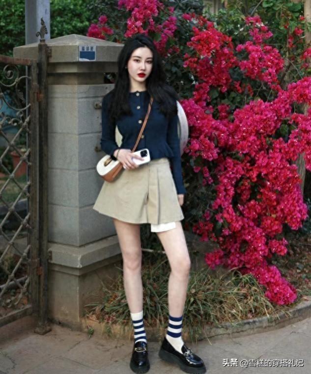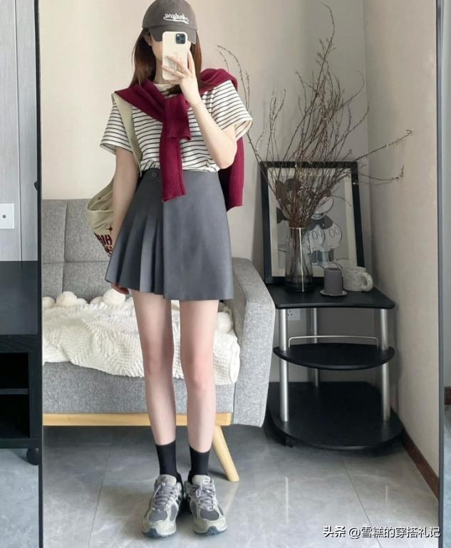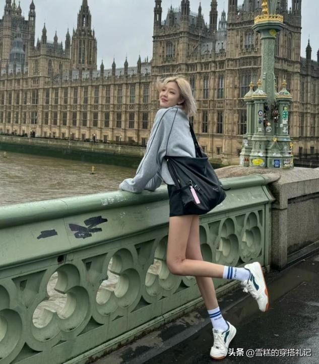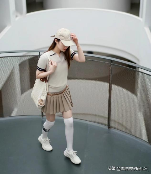 在不同場合的短裙穿搭當中,休閒而又時尚的穿搭沒有拘束,我們可以用超短裙組合短上衣,短襪組合運動鞋,這種俏皮的短裙穿法,能夠更多的展示出腿長的細節感。