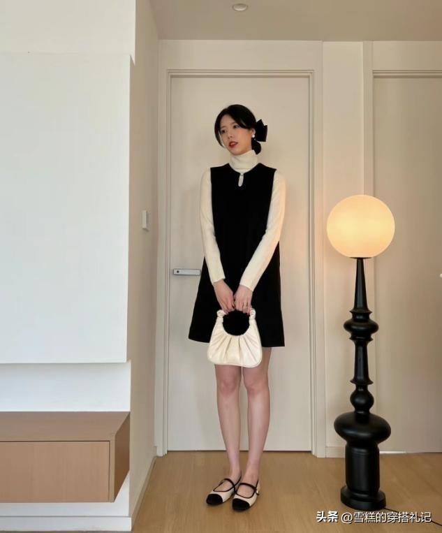 比較正式場合的穿衣設計,連衣裙的穿搭更能優化得體的視覺效果,長裙穿法可能會有一些拖沓,但是正式場合的黑白色系裙裝,能夠利用露小腿或膝蓋的穿法,展示出得體精緻的線條曲線。