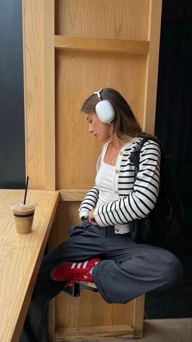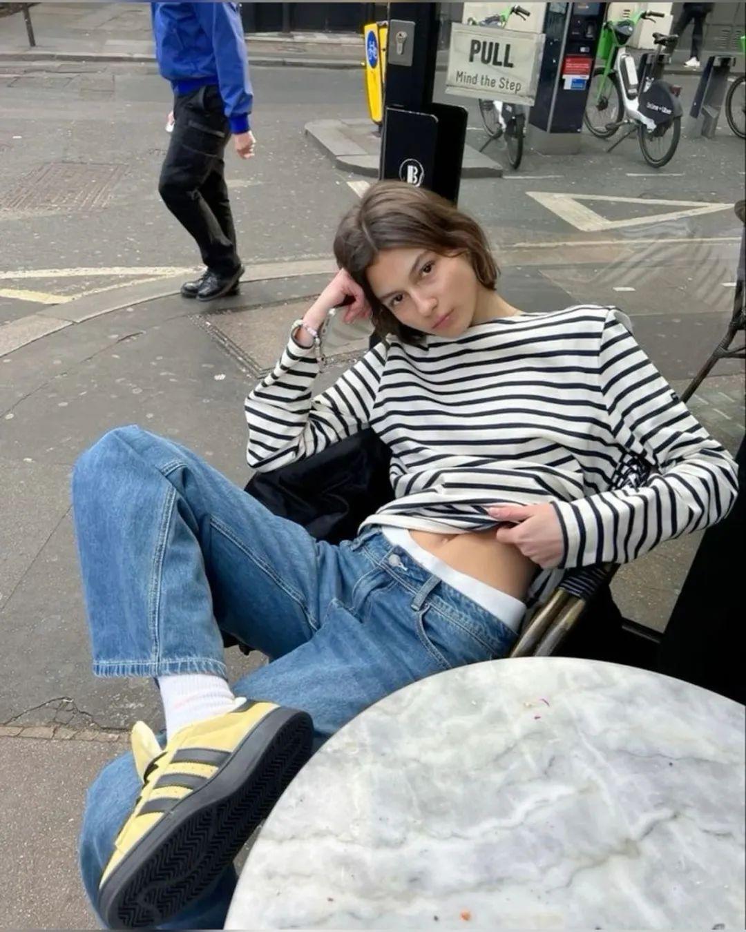 喜歡休閒風一點裝扮的姐妹,在日常的穿搭裏,估計都會有一兩件條紋衫吧?不管是條紋緊身上衣,還是條紋開衫,主打一個休閒。對於這種款式的上衣,下裝都建議選擇基礎純色,西裝褲、牛仔褲組合起來,會顯得更隨意。