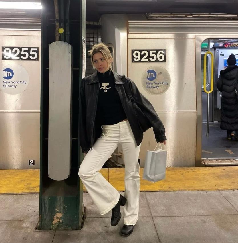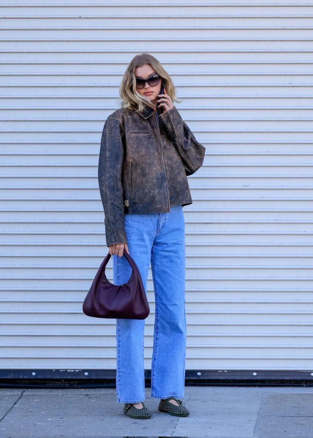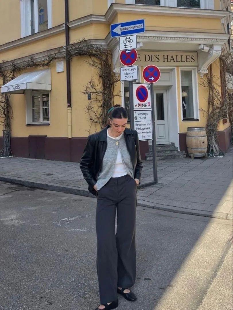 不喜歡風衣外套的話,可以嘗試夾克外套配直筒褲,最經典耐看的款式就是皮質款式了,基本每一年都會流行。