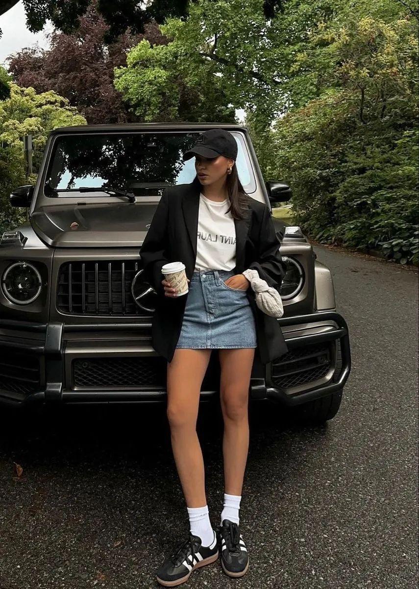像南方的大部分地區溫度會回升了,變暖和的話,倒是可以選擇一些短裙、短褲來穿,上身選擇經典的外套、襯衫或針織,這樣能很好展現出身材比例,顯腿長。