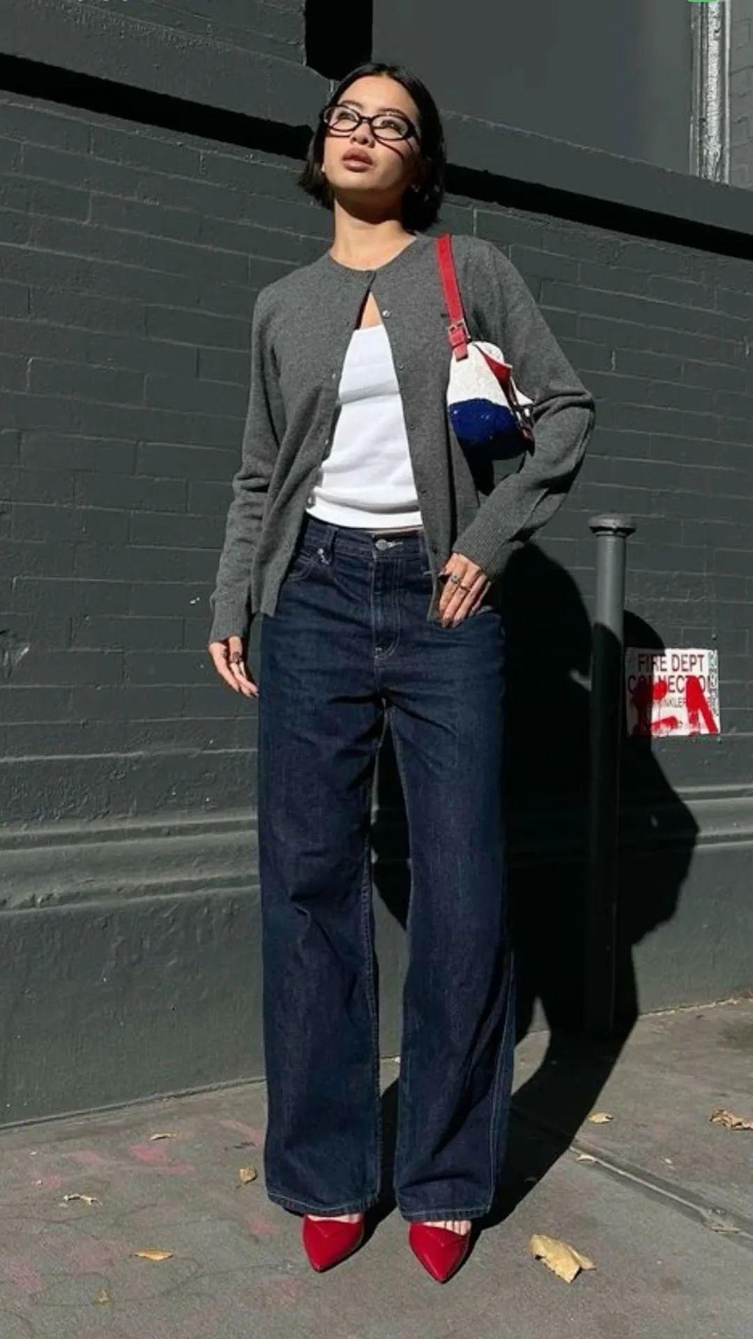 回暖一些的天氣,穿搭上就不太適合穿過厚的衣服了,選擇輕薄材質的衣服更合適。打底衫、針織衫單穿一件基本可以,下裝可以搭配牛仔褲、闊腿褲這些褲裝。