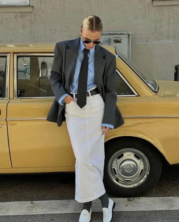 當然,如果風中還帶着微微冷意,可以利用起絲襪來增加溫度,除了黑絲之外,白色的絲襪也不妨嘗試下,個性又好看。