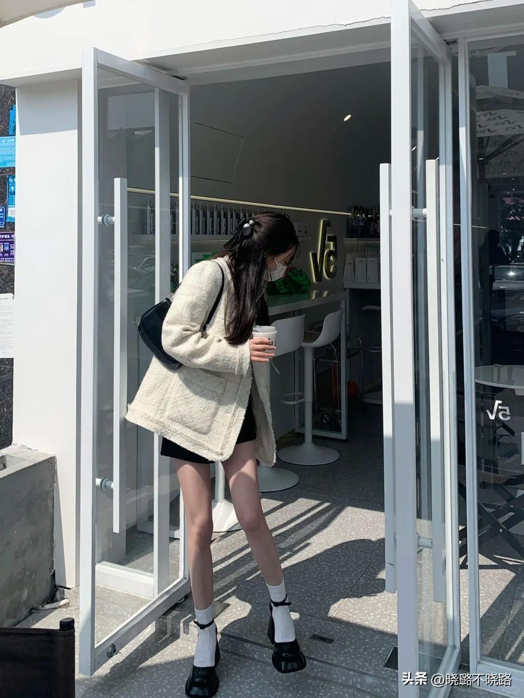 寬鬆的小香風外套搭配配修身短褲,瞬間營造出一種“下衣失蹤”的時尚造型。下半身的瑪麗珍帶一點粗跟的設計,有助於下半身製造更多量感。如此一來造型的橫向和縱向就會達到平衡,整體看着更錯落有致。