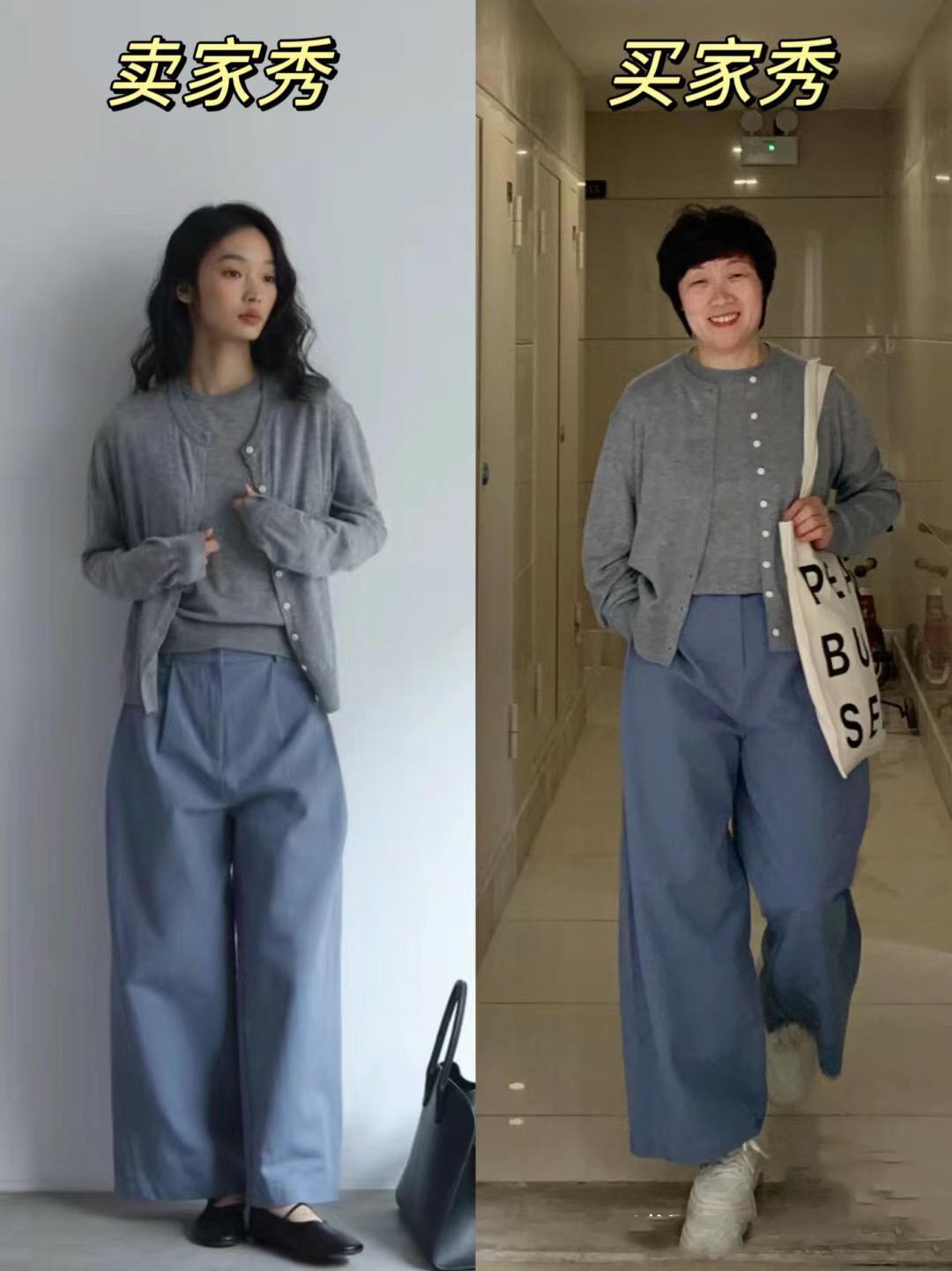 清冷知識分子範的穿搭,阿姨輩的年紀也是可以直接照搬的。比如灰色針織開衫配同色打底衫,就是優雅又清冷的。