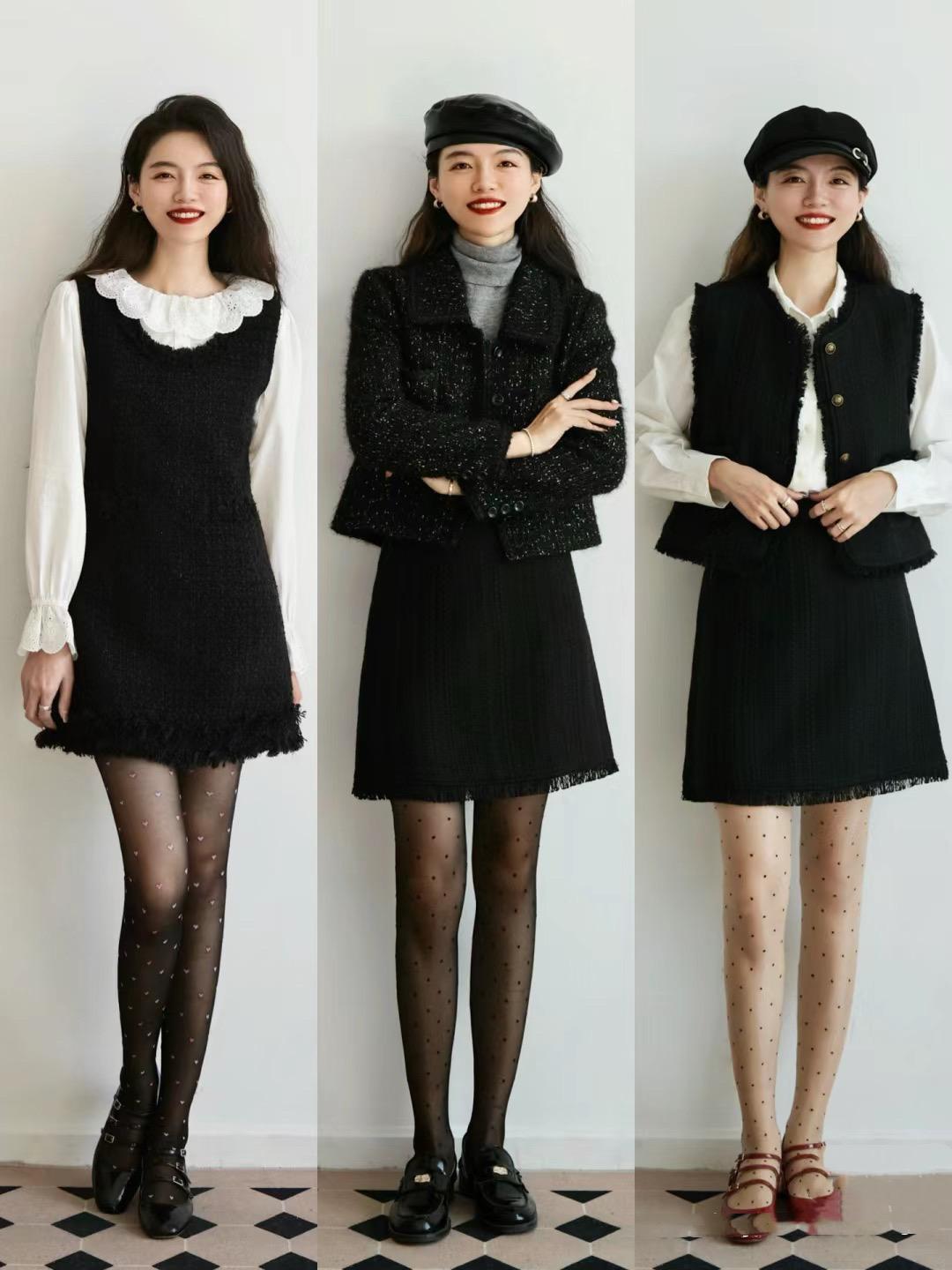 經典的黑色短款A字裙,我們可以配針織衫來穿着,溫柔又熱辣。如果想要修飾腿型的話,我們在選擇短款A字裙的時候,還可以搭配薄絲襪,薄絲襪修飾腿型,還比較顯瘦。