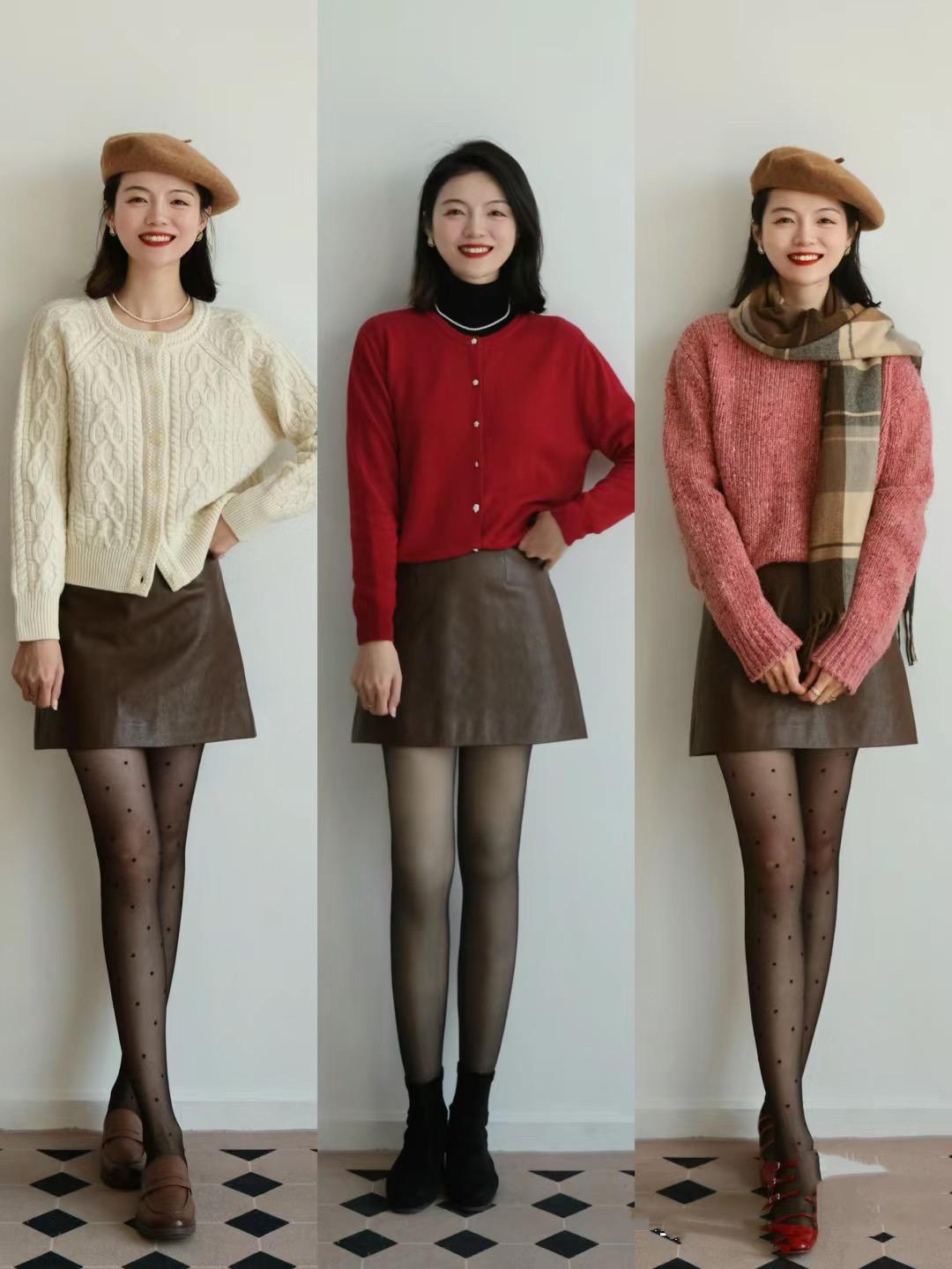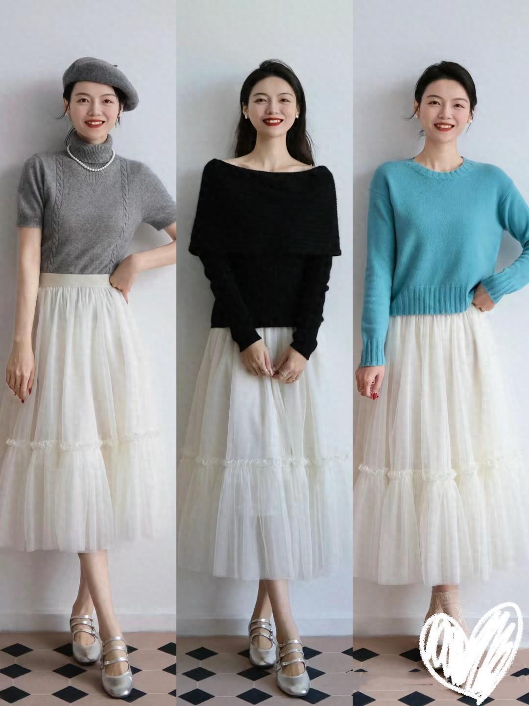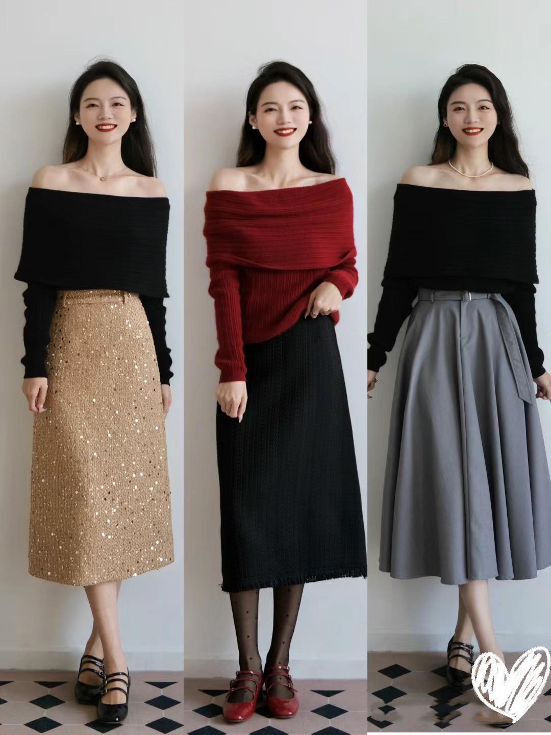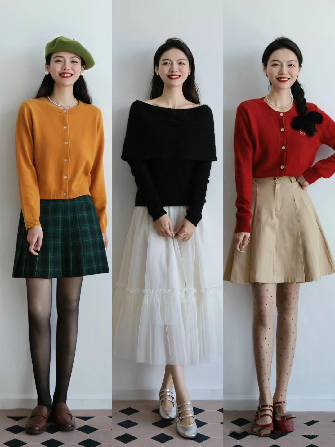 針織衫+A字裙,在修飾體型上,也有着更大的優勢。這種組合,就像是爲梨形身材量身定製一般。