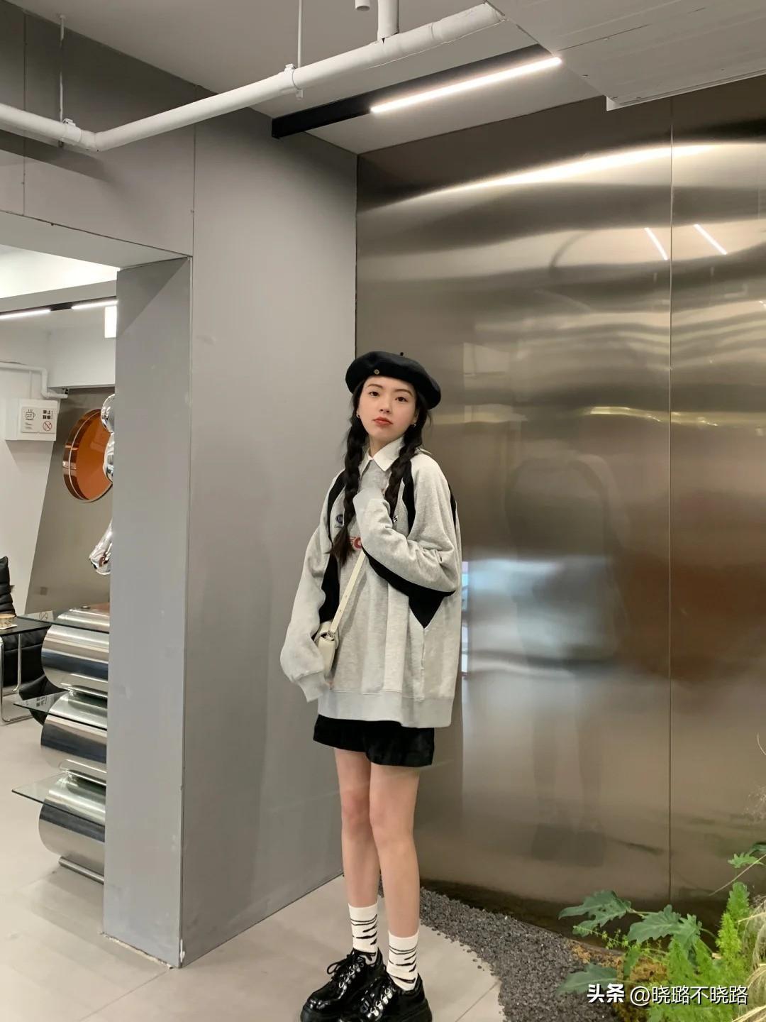 一條裙身在膝蓋以上的裙子系列,總給人一種青春美少女的氣質。由它與衛衣相結合,既可以延續衛衣的休閒氣質,又能加入不少的柔美和活力效果。