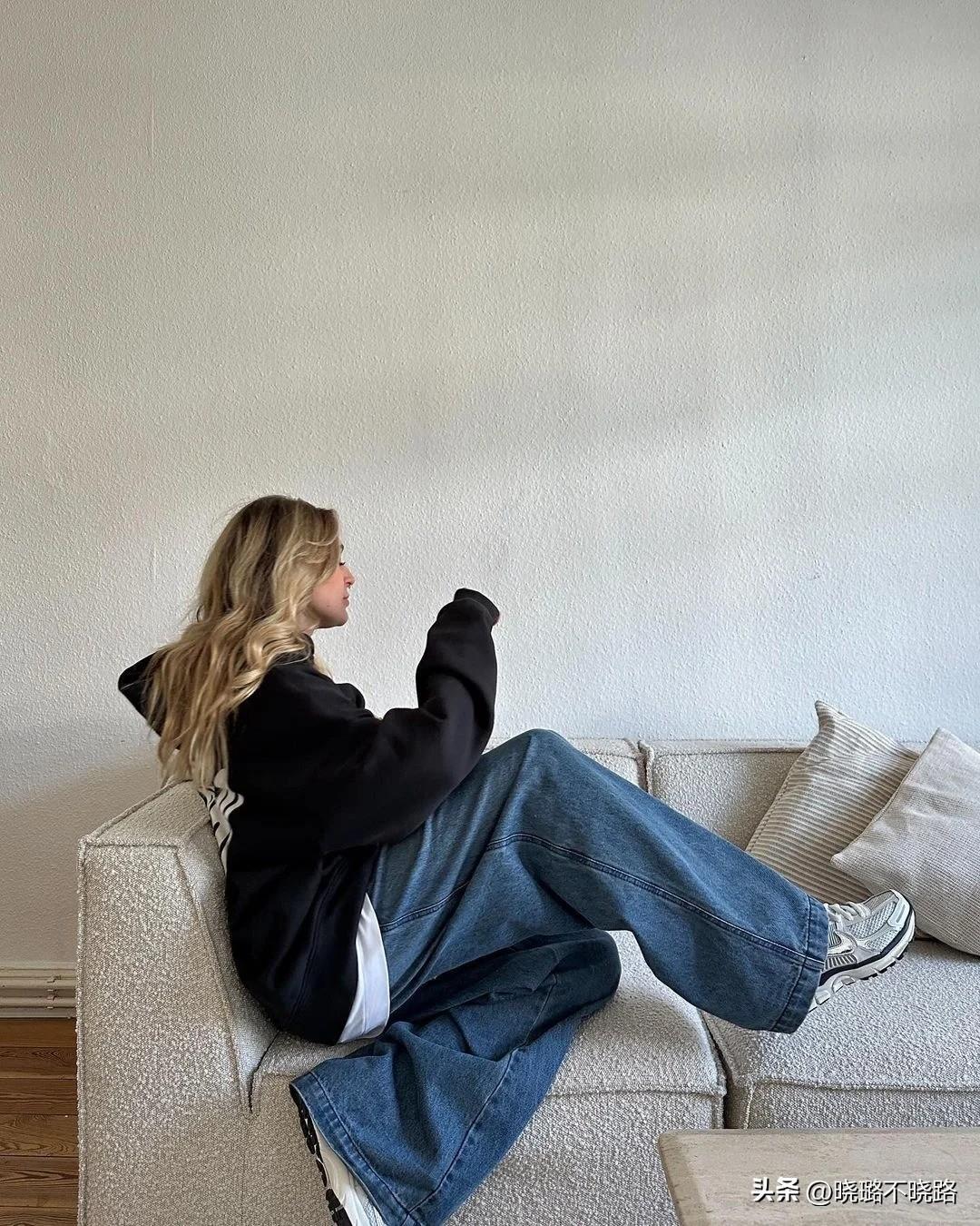 既然說到了延續休閒味道,除了衛衣和運動褲的組合,我們還可以嘗試用它搭配一些拖地褲。利用長長的褲筒加強下半身的佔比,並且在鞋面上略有堆積感的效果呈現會大大增強造型設計感,不管是出街還是通勤都顯得尤爲隨性好看。