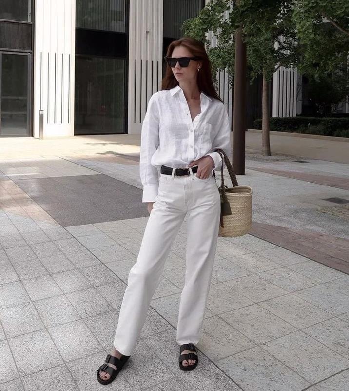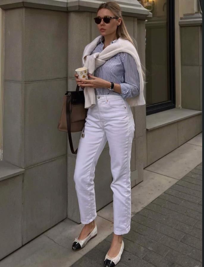 白色的牛仔褲,和經典藍一樣,都是很時髦百搭的,如果你穿膩了經典藍色,那麼就將其換成白色吧,這麼幹淨的顏色,和很多衣服搭配在一起,都會顯得和諧,也能讓你整個造型看起來明亮一些。