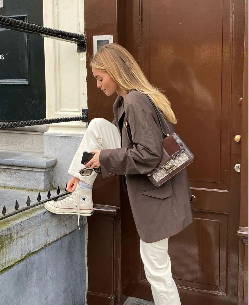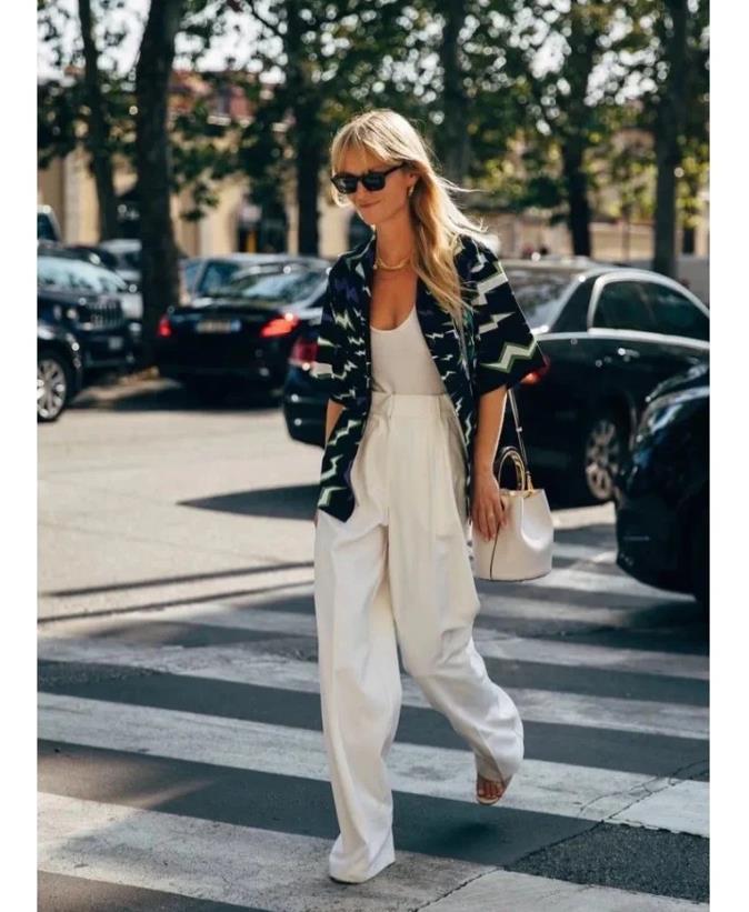 現在這個天氣,外套還是需要穿起來的,不管是什麼樣式的外套與白褲子相配,都沒有違和感。