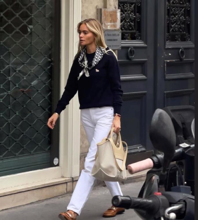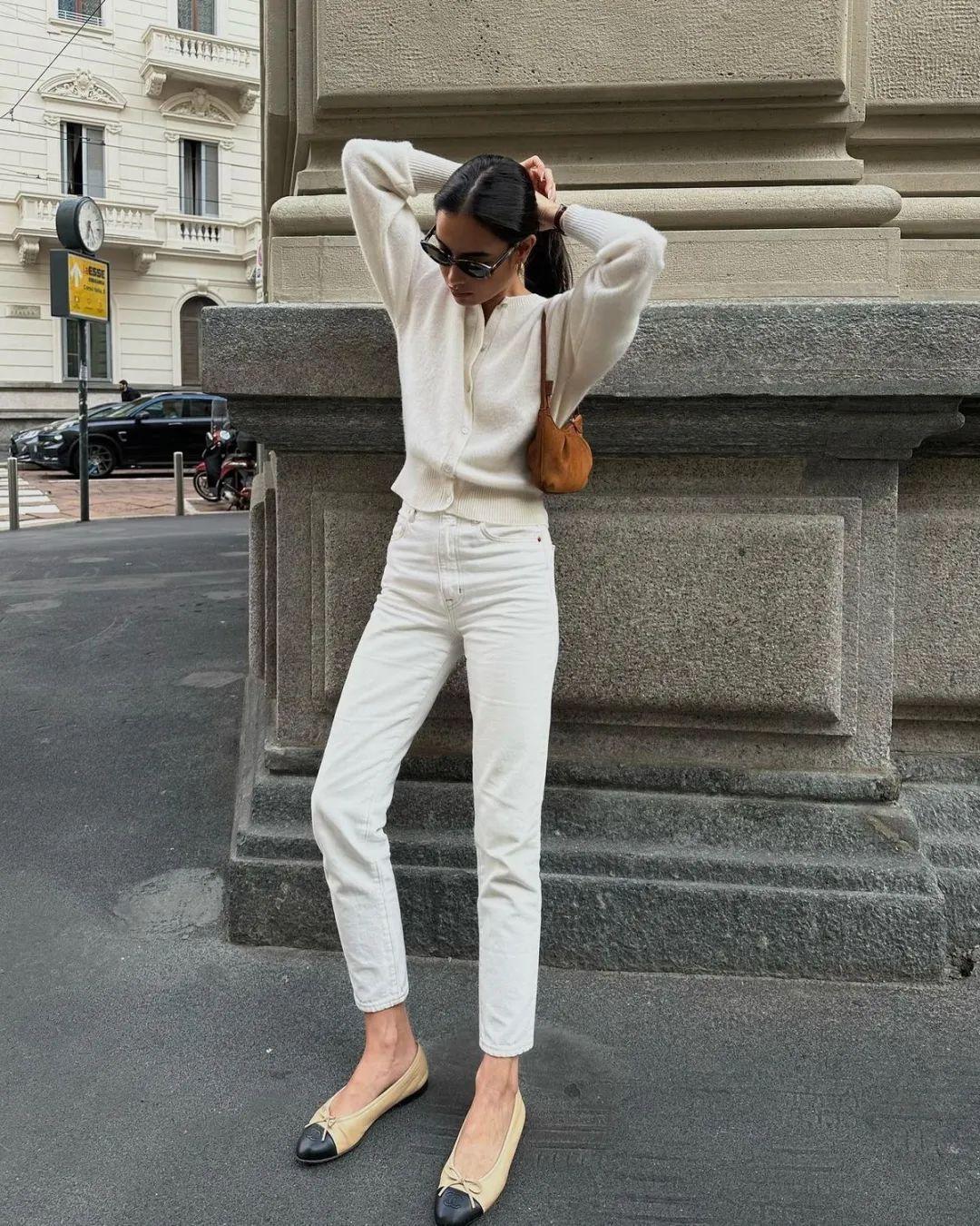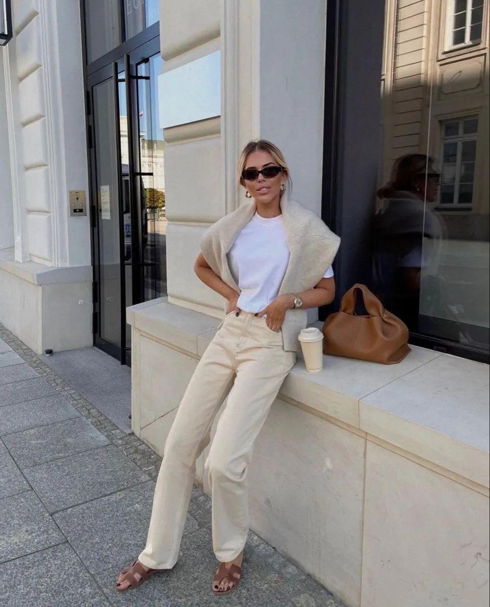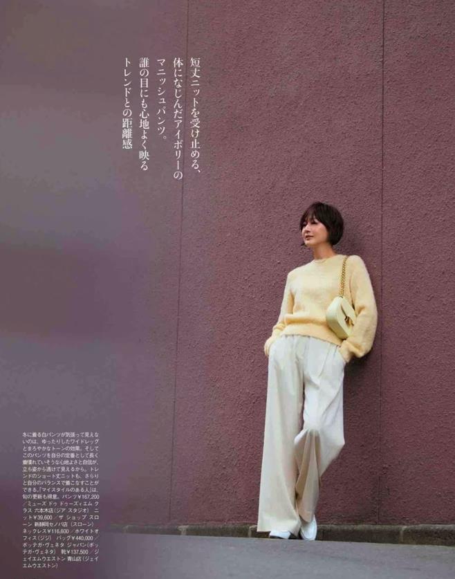 另外,這個季節針織衫或薄款打底衫都是出鏡率最高的單品,與白褲子結合完全沒有問題,日常舒適又好看。