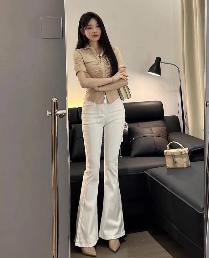 白色的微喇褲,穿起來清爽又幹淨,和各種色調的上衣相配都好看。