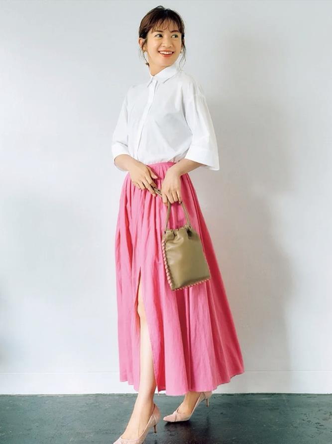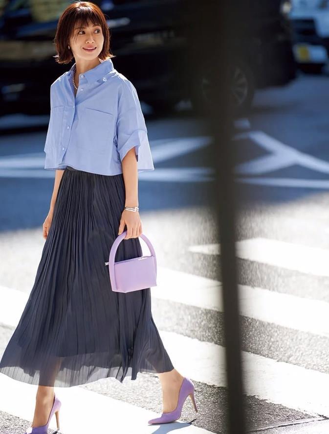 不管在什麼時候,襯衫和半裙的搭配都是最受女性們歡迎的,如果在夏天,不妨將雙腿暴露出來吧,盡情享受着夏日的清爽和時髦。