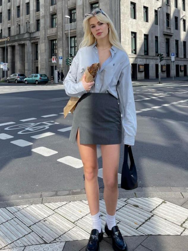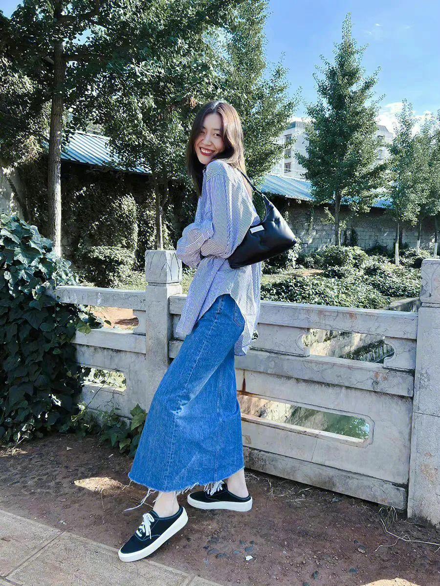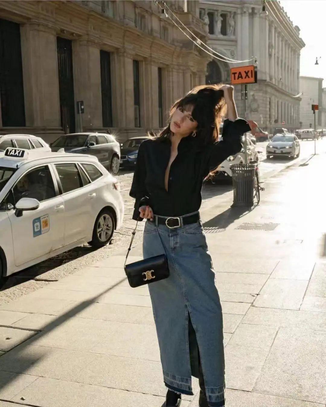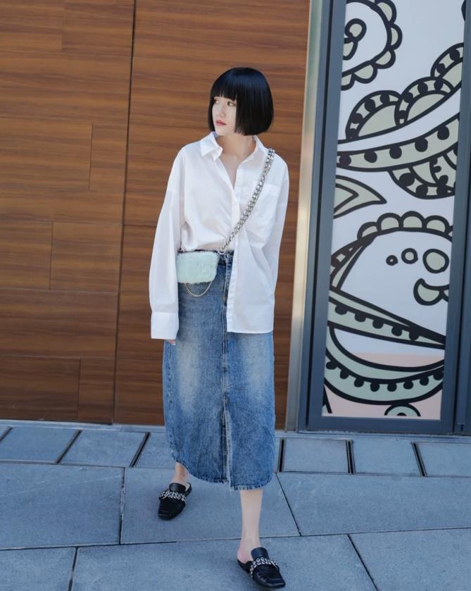 襯衫和牛仔半裙之間的組合,充滿着無限可能,當你選擇牛仔半裙來穿時,裙子的長度一定要選擇過膝,加上高腰的設計,哪怕你是嬌小類型的身材也能輕鬆駕馭。