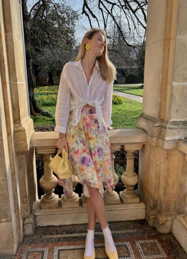 乾淨的白色襯衫和碎花半裙,深受衆多女性們的喜歡,它們的組合甚至跨越了國際,在法國女人的穿搭裏,不管是哪一種款式的花裙,她們都能用自己獨特的方式,來展現出自己的魅力。