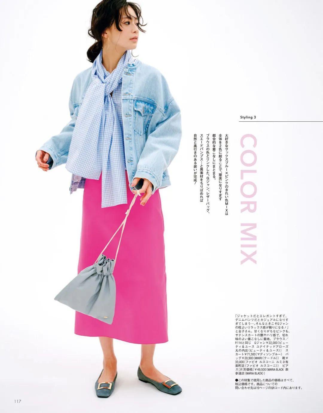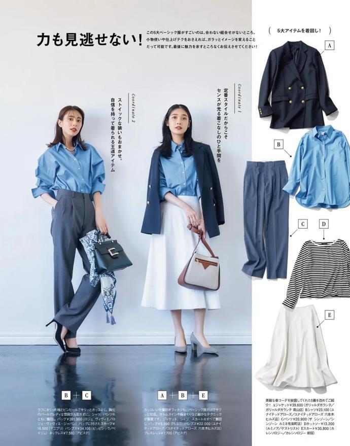 另外,我們還可以選擇一些比較鮮豔靚麗的顏色,比如淺藍色襯衫和明亮的直筒半裙,只要掌握配色技巧,多種彩色搭配一起也好看。