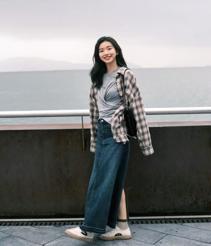 劉雯身上這一套休閒又隨意,牛仔半裙穿在她身上,真的很好看,輕鬆、隨意的造型,不僅將她個人風採呈現,又能與假日輕鬆氛圍相得益彰。