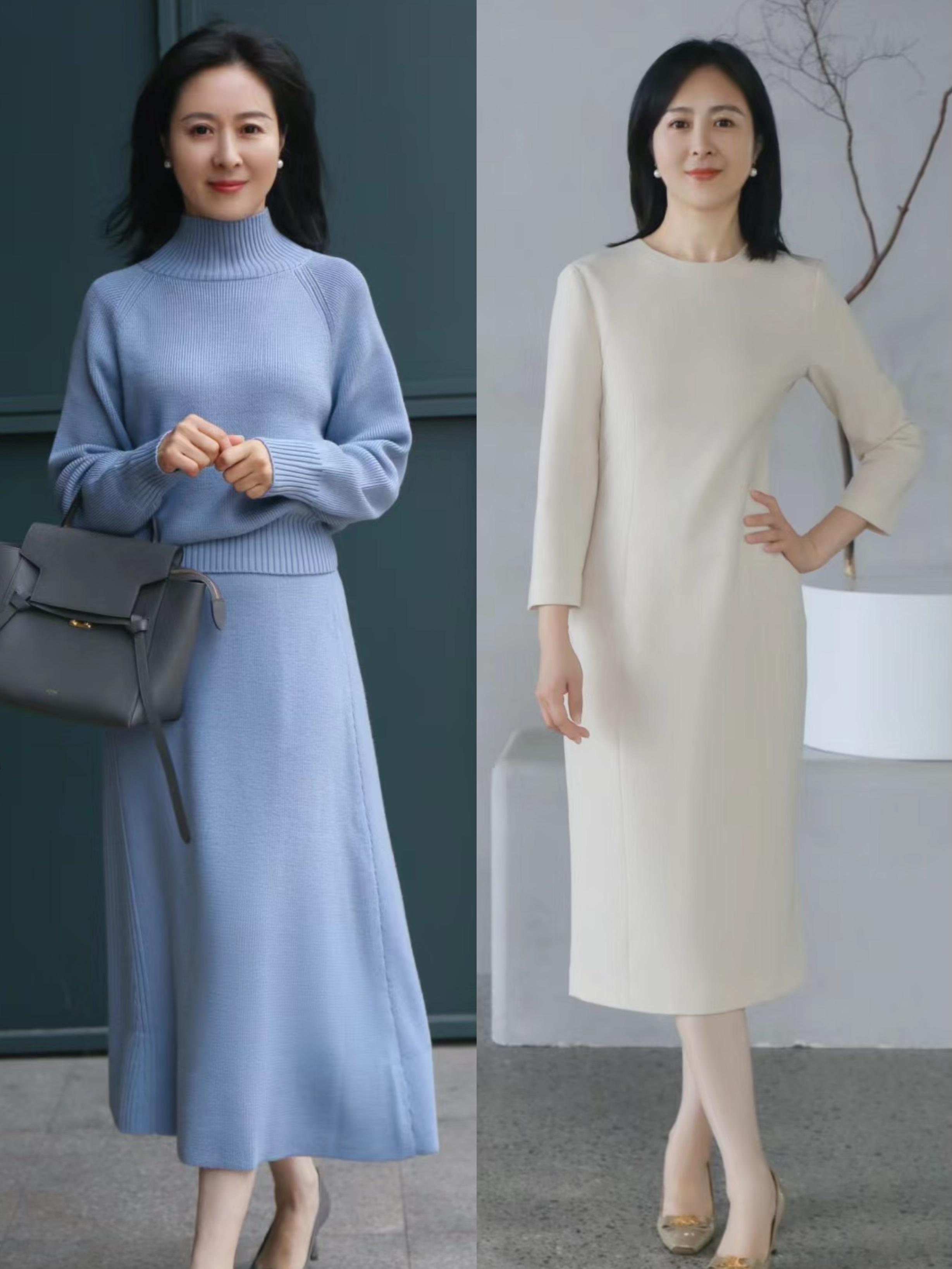 溫柔又嫺靜的穿搭,真的是一點都不挑人。中年女人想要表現出更加柔和的氣質,我們可以嘗試修身的針織衫來搭配百褶裙。