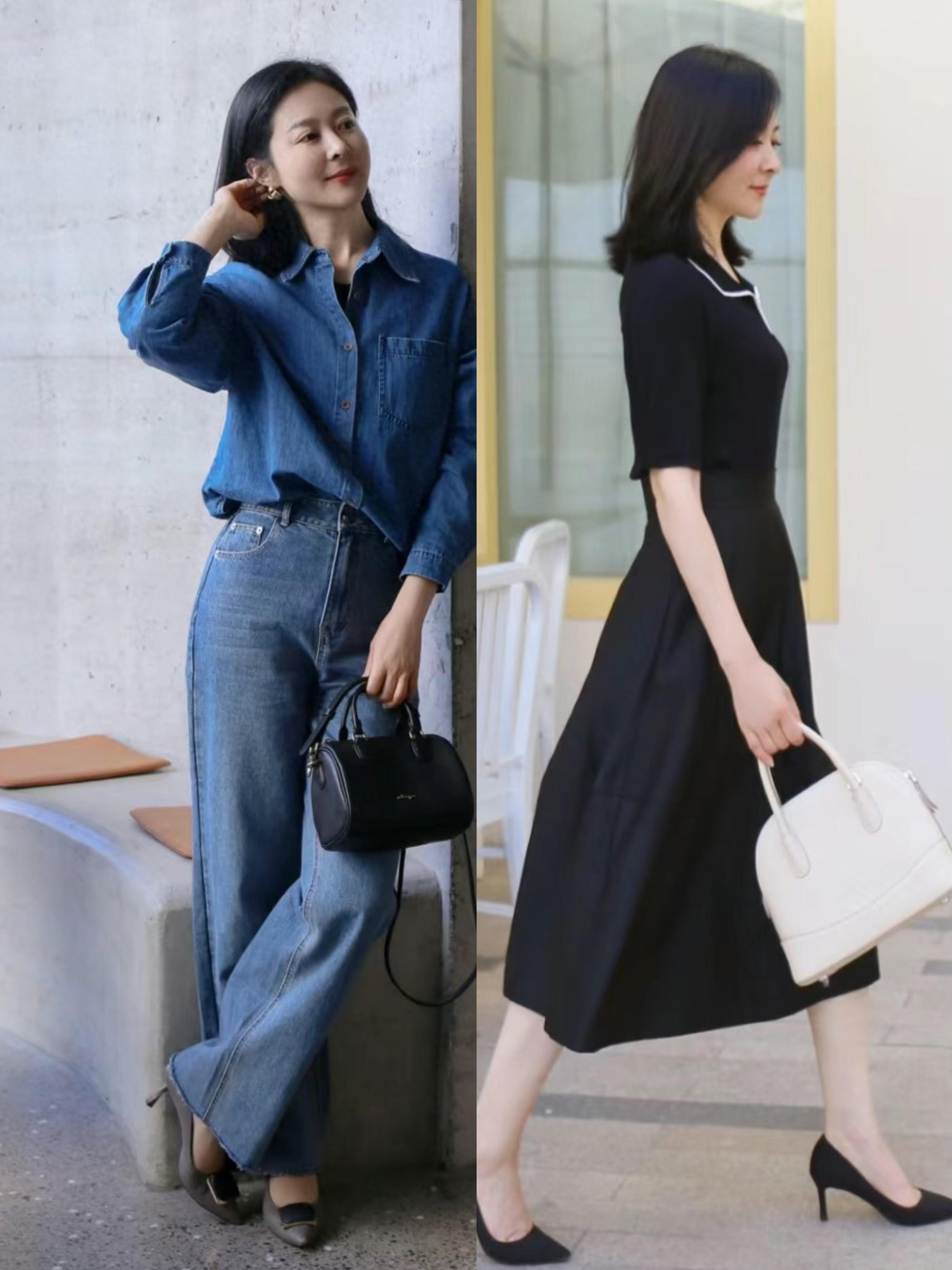 這位氣質優雅的博主,更喜歡選擇修飾身形的服裝,比如收腰的黑色連衣裙,就可以勾勒出纖薄的身形,搭配尖頭的高跟鞋穿着、精緻又體面。