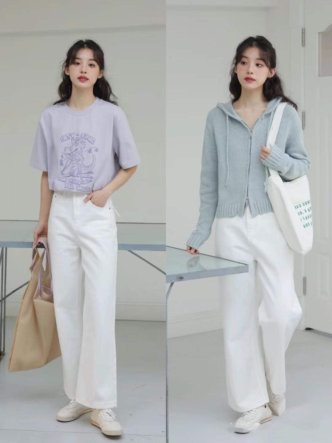 用淺色系的V領針織衫,來搭配高腰的水洗藍闊腿牛仔褲,乾淨又大方。高腰的闊腿牛仔褲,水洗藍的色彩非常清新,更符合春季氛圍、文藝且清冷。