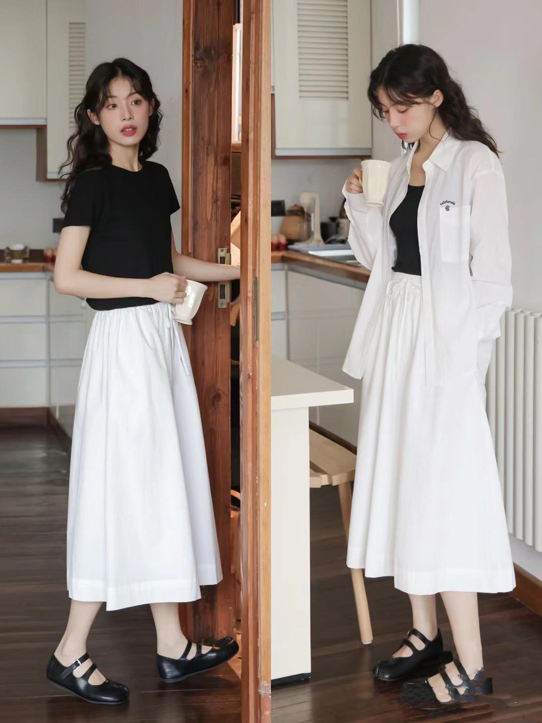 用修身的黑色T恤來搭配白色襯衫,高級且清冷的黑白配,將文藝清冷範穿搭完美演繹。尤其是與白色襯衫呼應的半身裙,與黑色T恤呼應的瑪麗珍鞋,都更加完美。