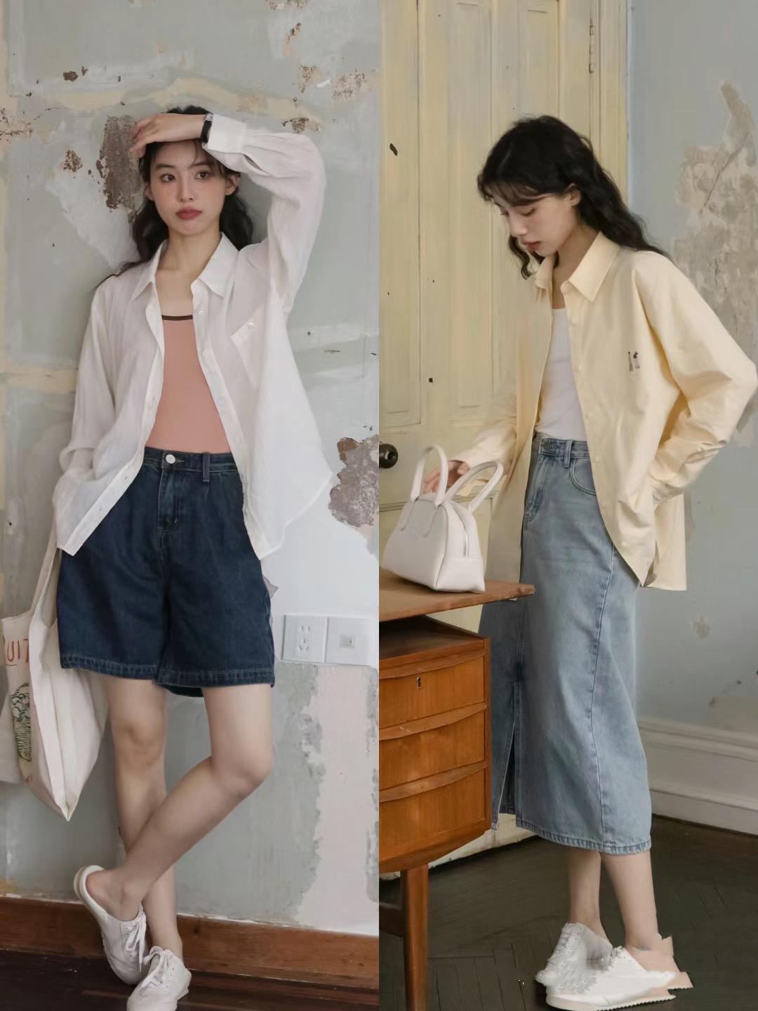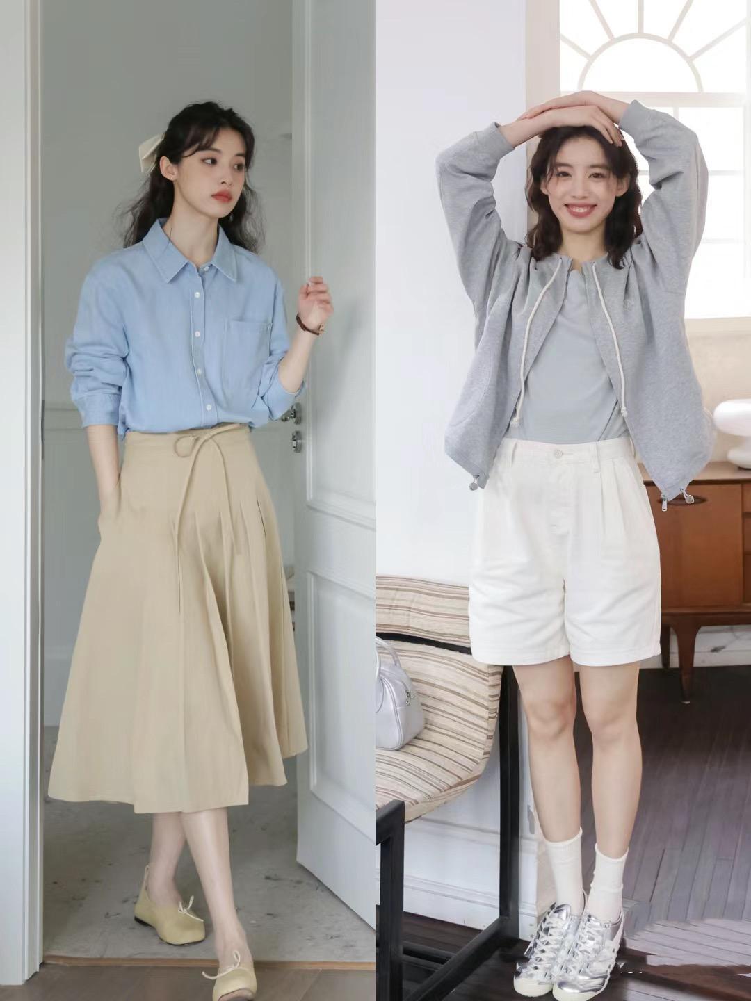 像這種色彩素雅的棉麻襯衫,可以搭配高腰的百褶半身裙。棉麻質感自帶文藝範,上身舒適度也足夠。清爽乾淨的配色、總是給人一種很大方的美。