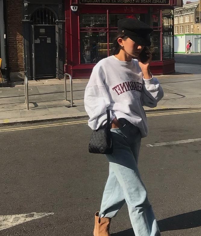 這是屬於打工人的穿搭,帶點美式慵懶和酷感,春天,不是很冷的天氣,就是喜歡將自己藏進大大的針織開衫裏,選擇牛仔褲和小白鞋,舒適自在。