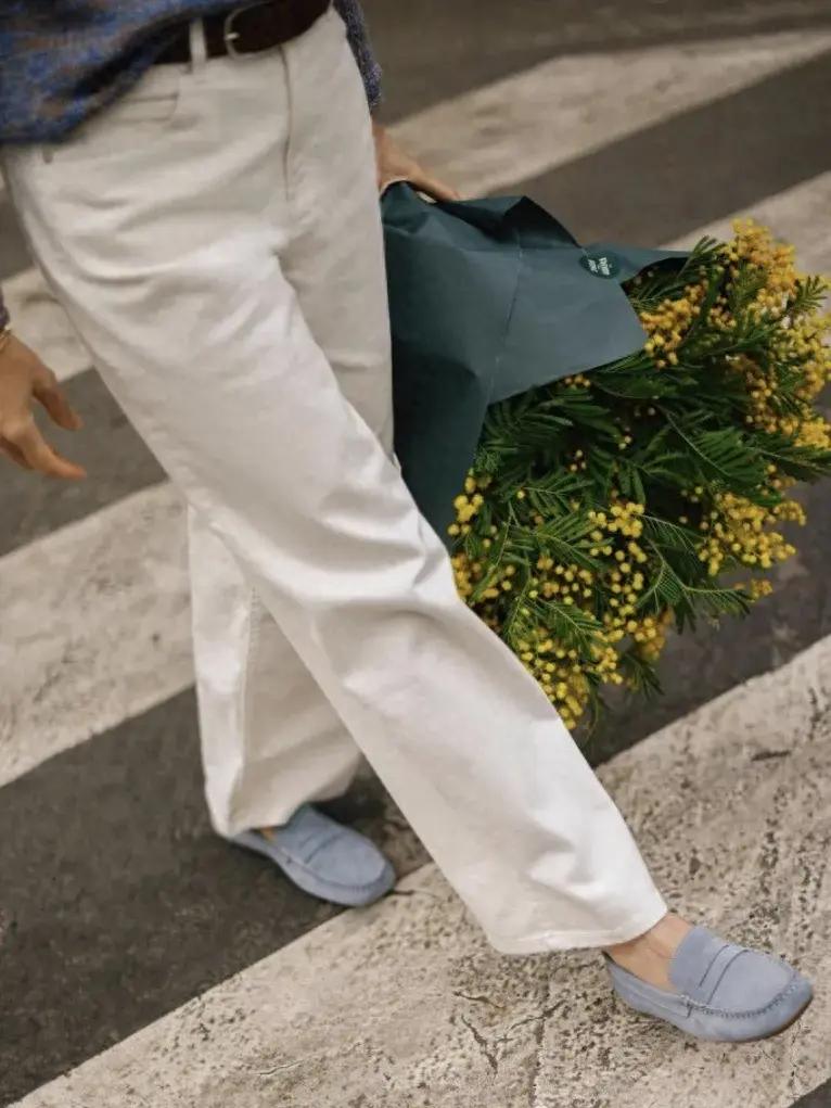 樂福鞋有平底和粗跟兩種,想要穿得舒適休閒一些的話,選平底就行了,當闊腿褲與樂福鞋相配時,就很好塑造出優雅舒適感。