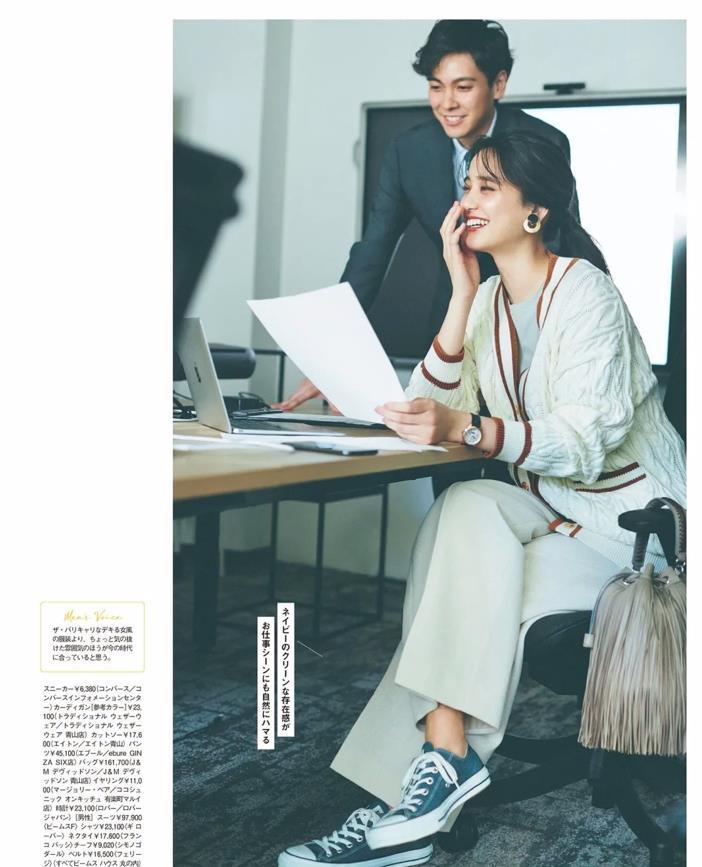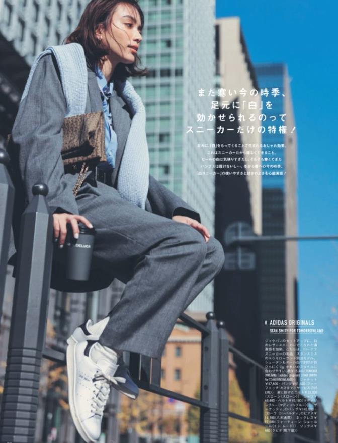 選擇白色運動鞋,恰到好處與襯衫進行了色彩呼應,讓整個造型配色更協調了。