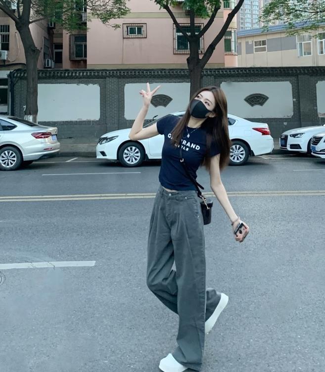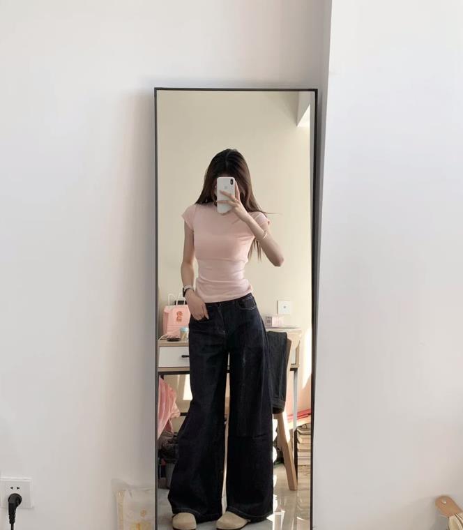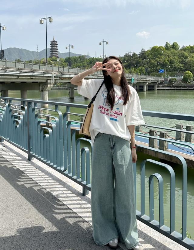 夏天的氣息也漸濃了,在悶熱的季節裏,不喜歡露腿的姐妹,可以試試這樣穿,白色短袖t+闊腿牛仔長褲,就算是不露腿,也很顯瘦顯腿長。