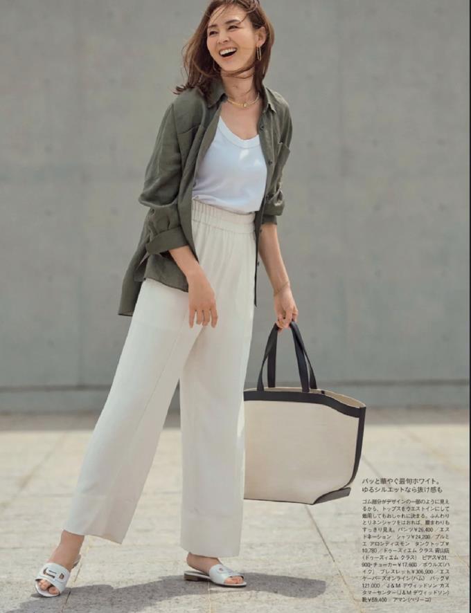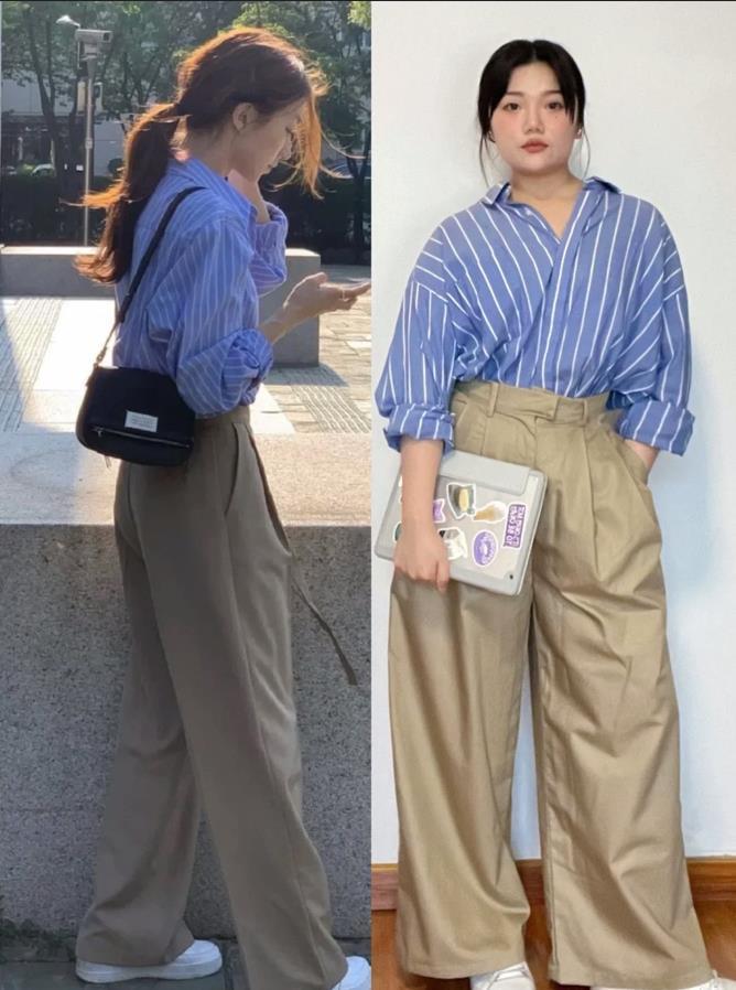 穿闊腿褲和平底鞋的時候,該選擇什麼樣的上衣來配呢?選擇一件襯衫會很不錯呢,借鑑下這位日雜博主的穿法,襯衫+背心疊穿,打造層次感,又顯得很舒適自在。