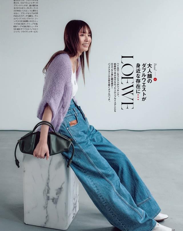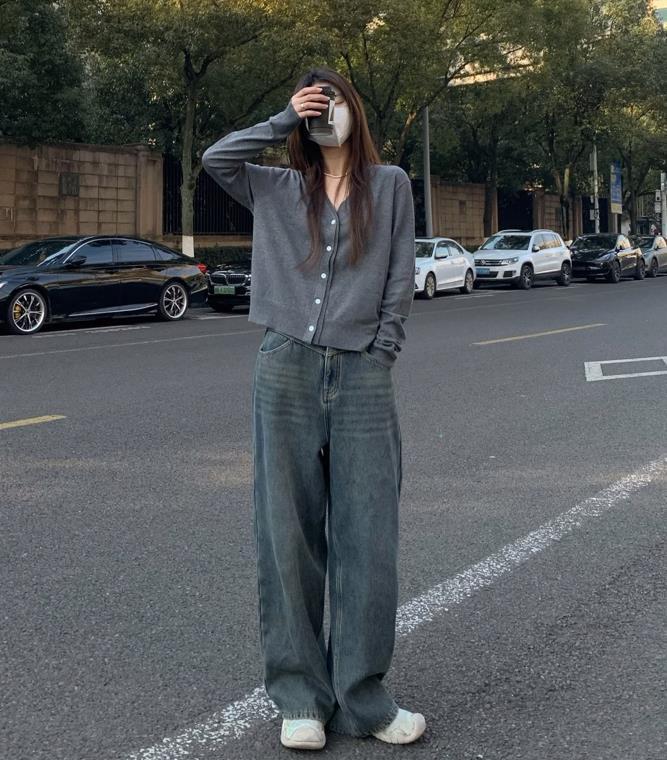 牛仔款的闊腿褲,版型會更加完美,穿出來的效果也是很顯瘦的,對腿型的修飾程度更佳。高腰設計,與短針織開衫相配,完美優化了整個身材比例。白色的平底鞋,給足了你休閒和舒適。