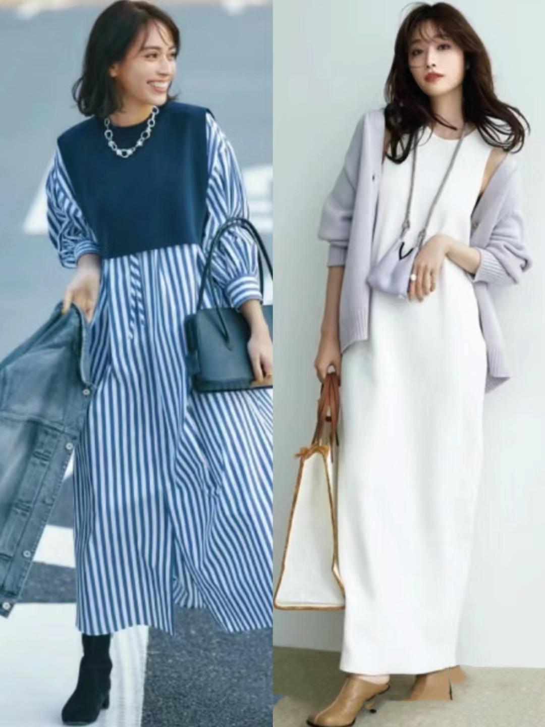 條紋襯衫裙,搭配比較寬鬆的版型,穿起來更加舒適自在。爲了塑造優越的比例感,我們還可以用條紋襯衫裙來搭配針織背心,顯得身材比例更加完美。