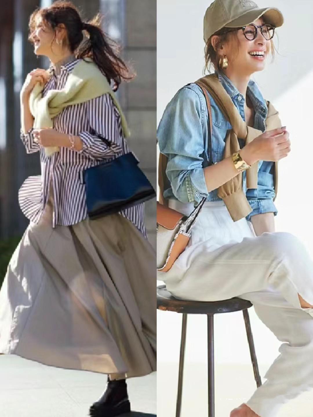 百穿不膩的牛仔襯衫,也屬於一種經典耐看的單品呀。像這種稍微寬鬆一點的牛仔襯衫、更容易塑造出體型上的纖薄感。