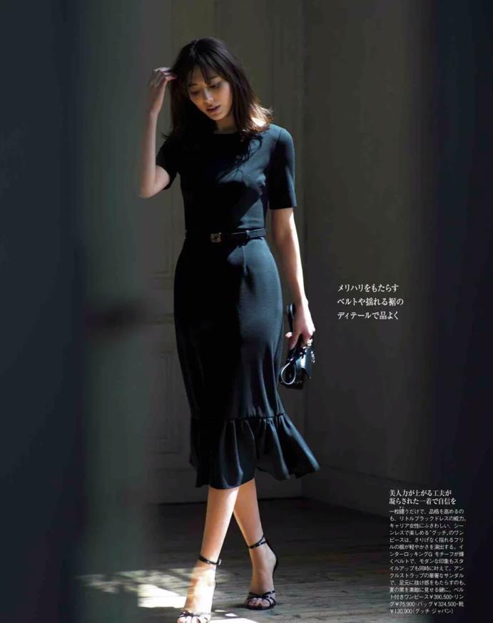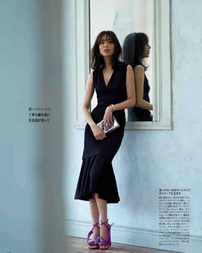 針織的連衣裙,面料很柔韌舒適,貼身的剪裁還能很好展現出女性的曲線美。